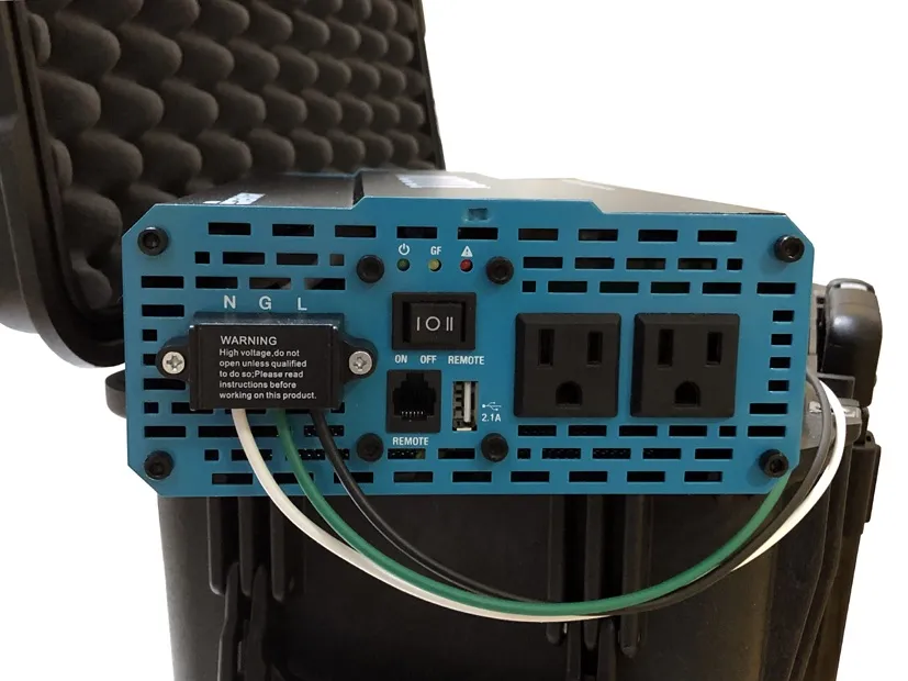 ■2つのAC100VコンセントとDC5V(USB)端子を備えた、1000W正弦波インバーターを内蔵しています。
