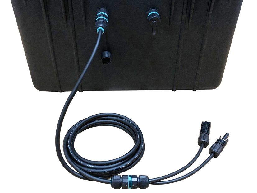 ■別売りの「MC4コネクタ変換ケーブル」を併用すれば、開放電圧計100Vまで、最大出力計260Wまでのメガソーラー用を含む市販の太陽電池パネルを接続して充電できます。
