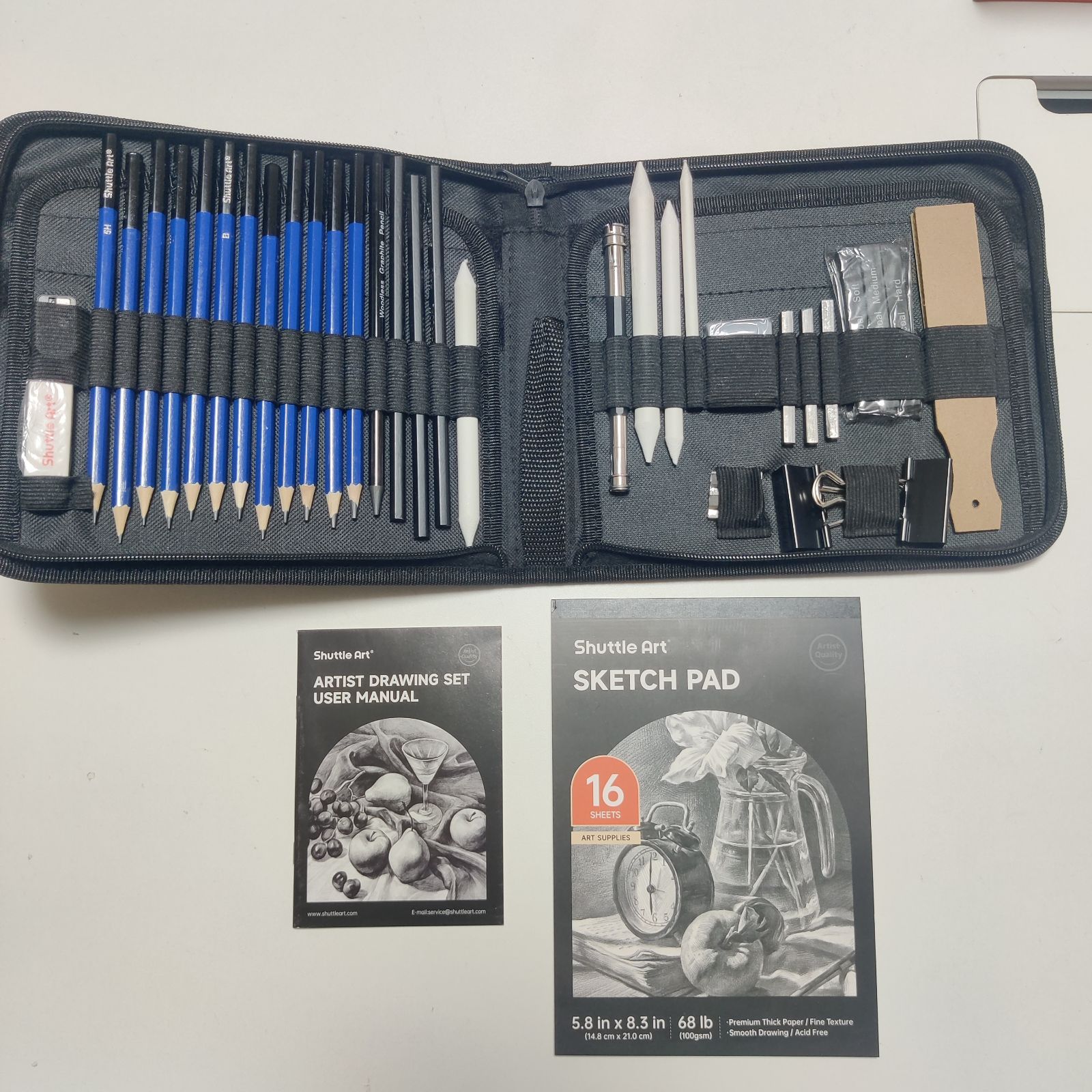 Shuttle Art スケッチ鉛筆 デッサンツール 子供や大人も適用な絵具 37点 ポップアップ式 ポータブル 収納ケース付き 素描初心者 アーティスト 美術 アート専門 製図 クラフト