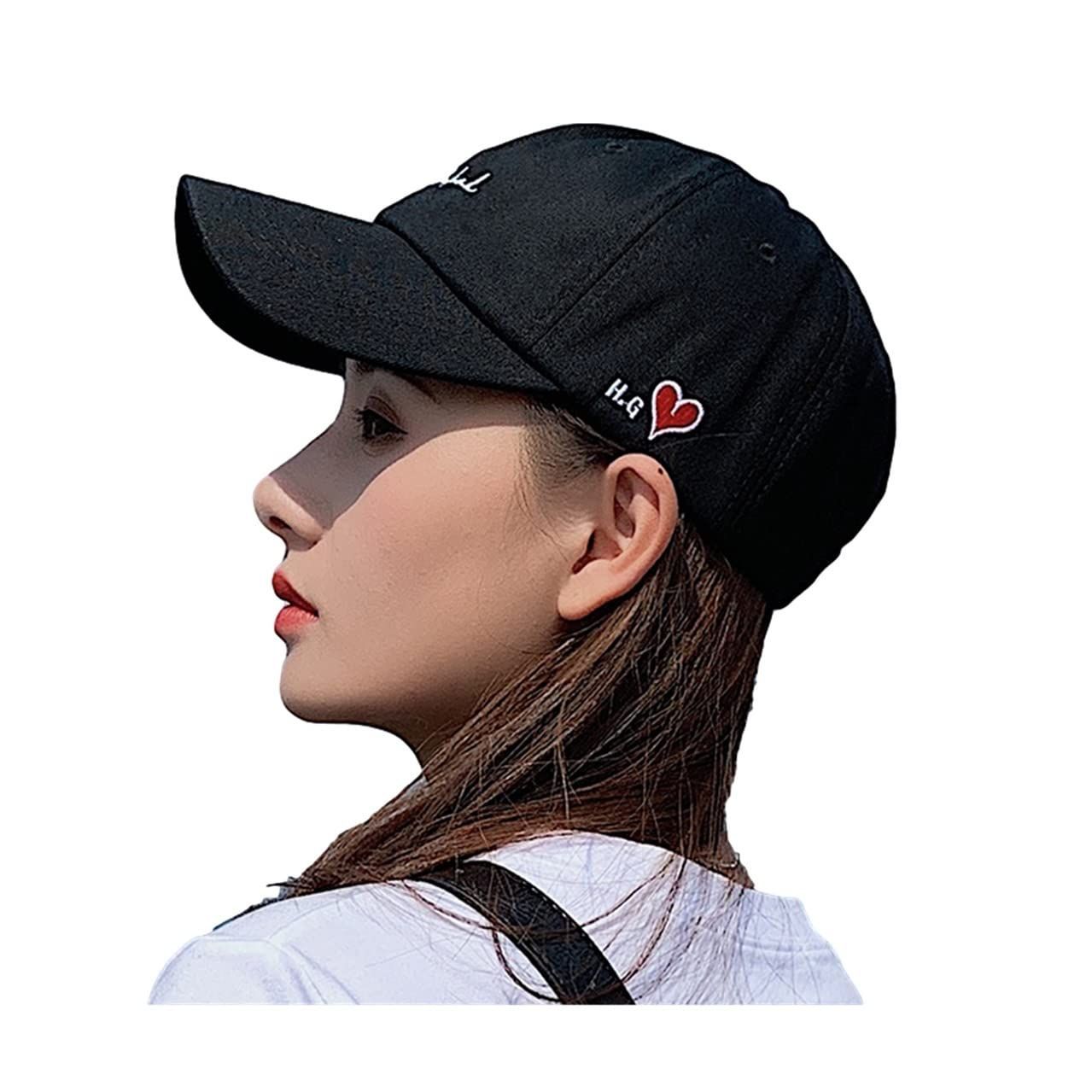 キャップ レディース 英字 ハート ワンポイント 刺繍 アジャスター 調節 帽子 きゃっぷ ぼうし ホウシ 黒 ブラック 白 ホワイト アイボリー 可愛い カワイイ おしゃれ お洒落 オシャレ UV カット 紫外線 日よけ 韓国 ローマ 英語