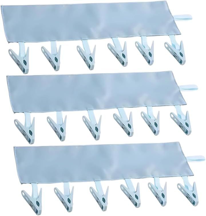 ARESACHI ハンガーピンチ 携帯ハンガー 旅行 トラベル 持ち運び 3点セット (薄水色, 34x10)