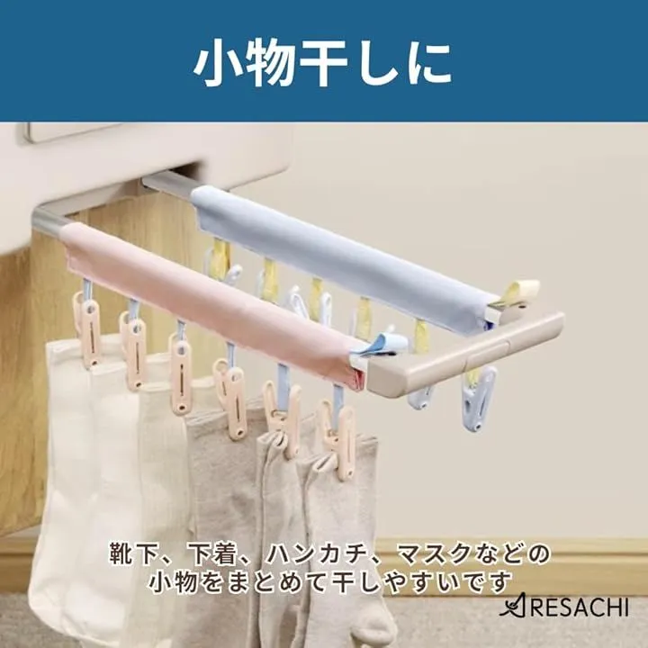 「靴下や下着などの小物干しに便利」靴下、下着、ハンカチ、マスクなどの小さな洗濯物をまとめて干しやすい洗濯ばさみ付きタイプです。