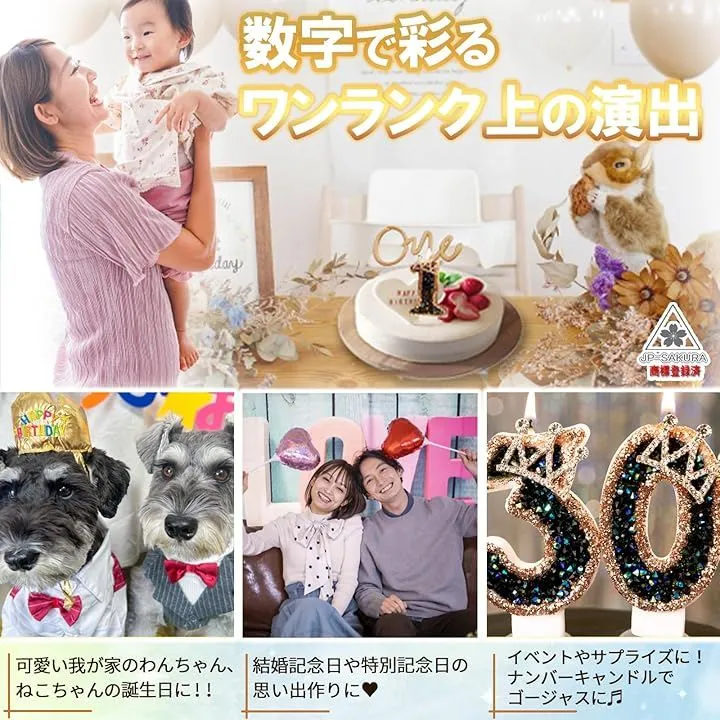 「簡単で安全な使用 」 誕生日数字キャンドル0~9には専用の固定スタンドが付属し、お祝いのイベント中にケーキや他のお祝いのアイテムに安定して配置することができます。