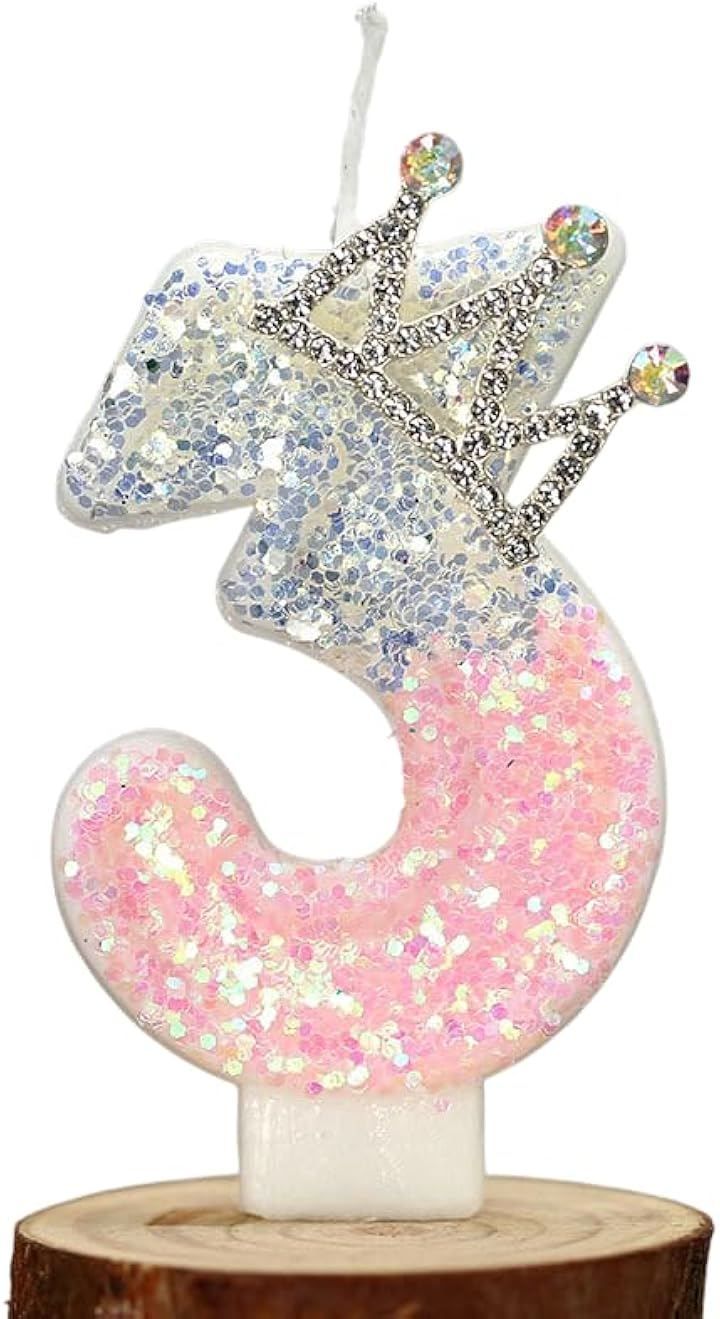 JP-SAKURA バースデー ナンバー キャンドル 誕生日 ロウソク 数字 誕生日ケーキ ラメ数字 (ブルーピンク, 数字:3)