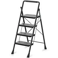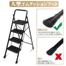 RIKADE 脚立 はしご 鉄素材 持ち運び便利 持ち手付き 軽量 折りたたみ脚立 踏み台 滑り止め付き ステップ台 (ブラック, 四段)
