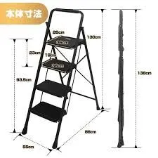 RE06 脚立 はしご 鉄素材 持ち運び便利 持ち手付き 軽量 折りたたみ脚立 踏み台 滑り止め付き ステップ台 (ブラック, 四段)