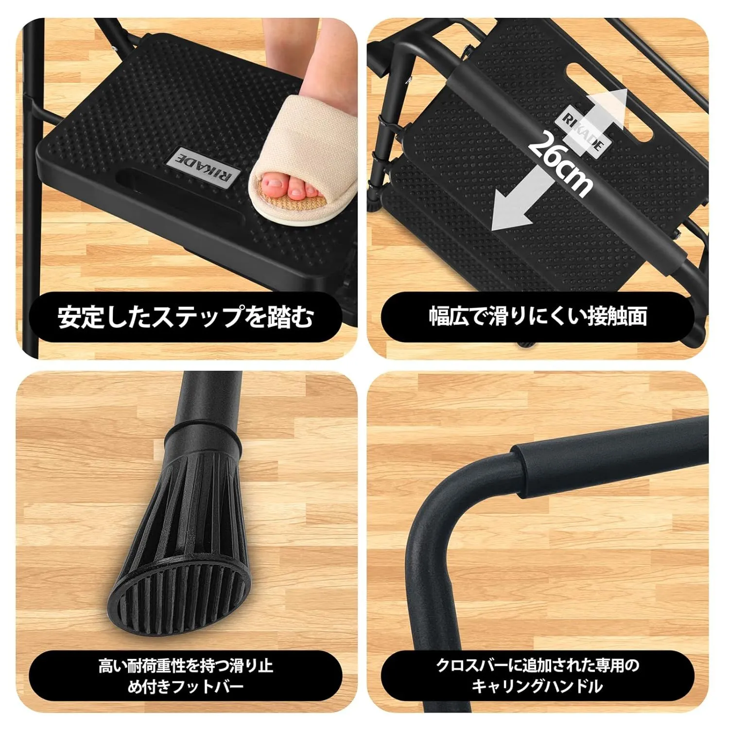 【 広い踏み板】踏み板の面積は広くて、最上部がその上にさらに幅が広がっています。踏み板の表面には500以上の粒があります。特別設計滑りにくくて登るとき安心感を与えます。