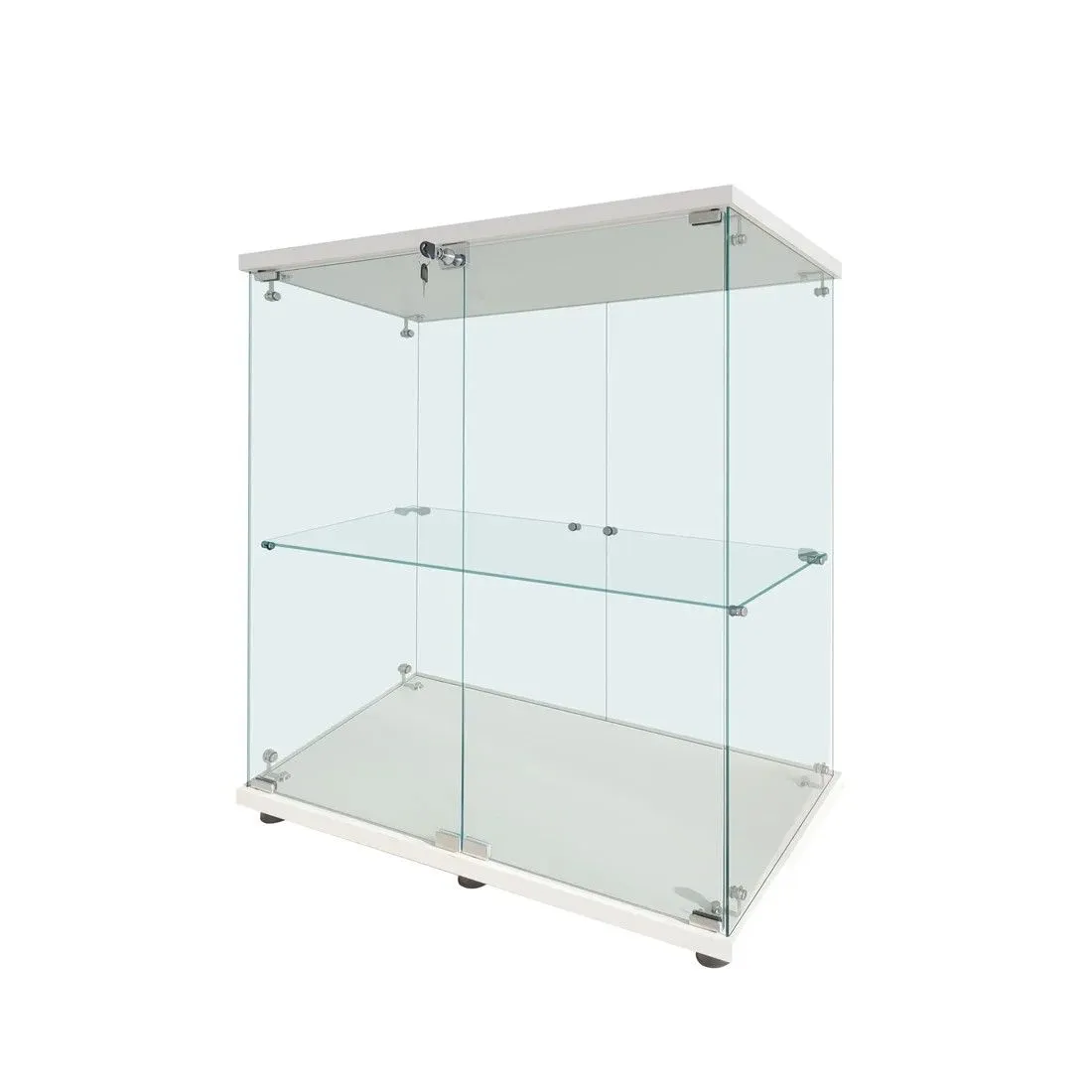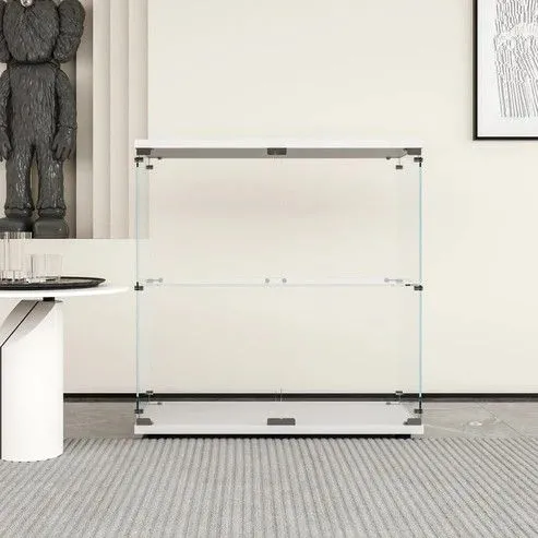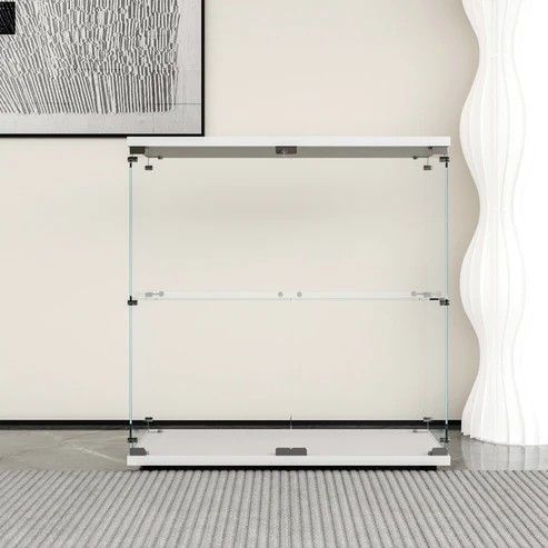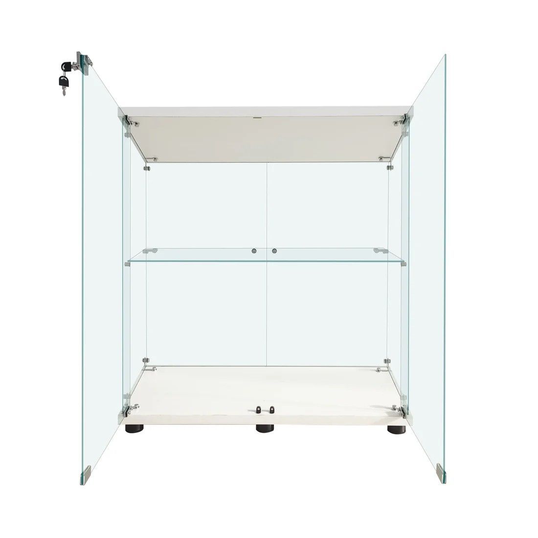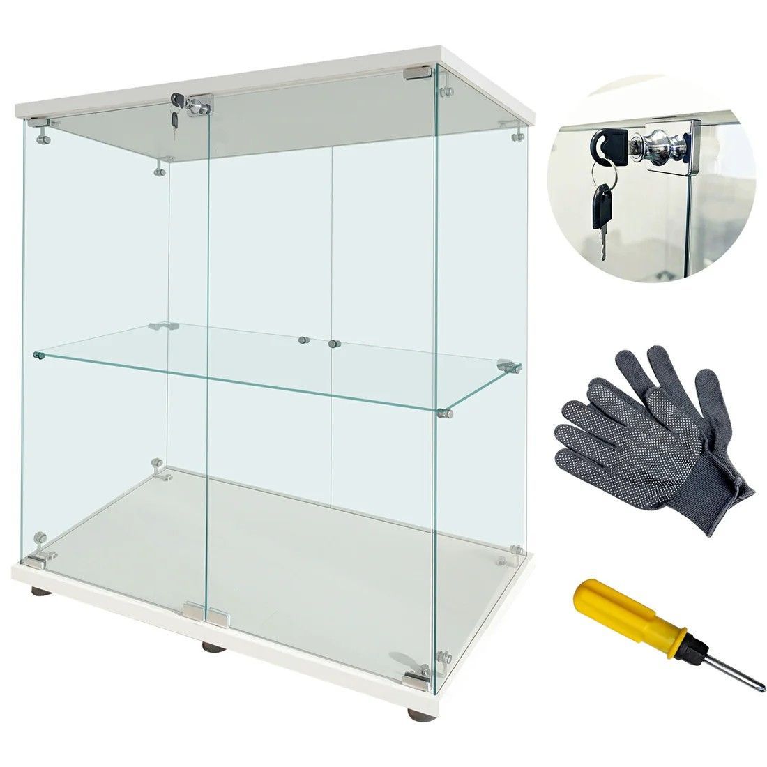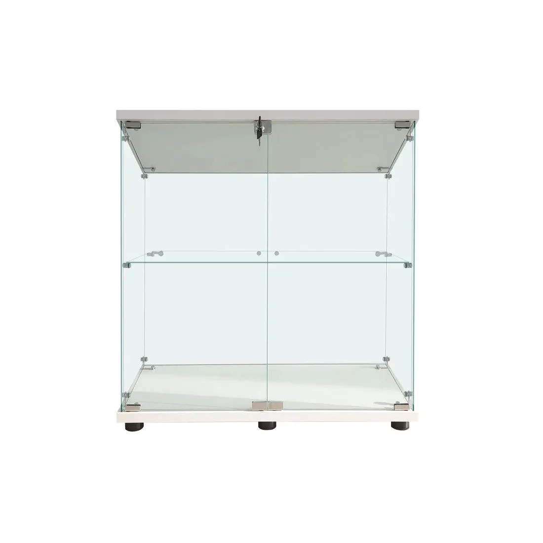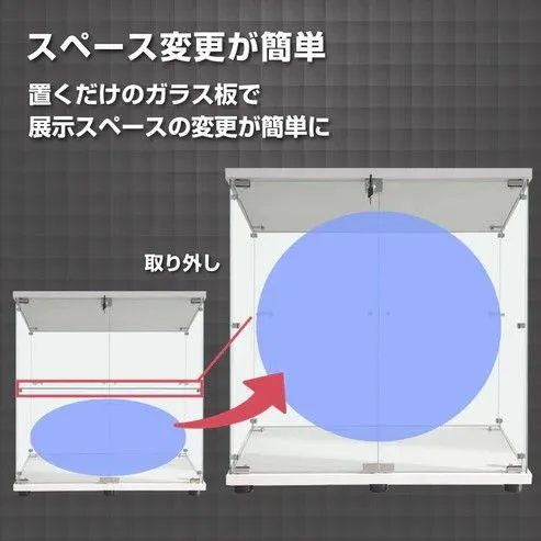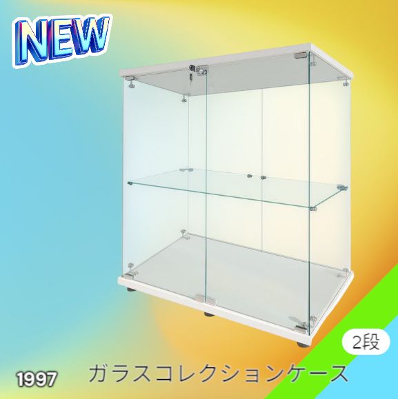 #1997 両扉 強化 ガラス ケース 2段 ホワイト カギ付き 豆脚付き 転倒防止器具付き フィギュア プラモデル プラモ ※一部地域離島別途配送料有