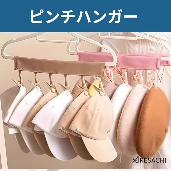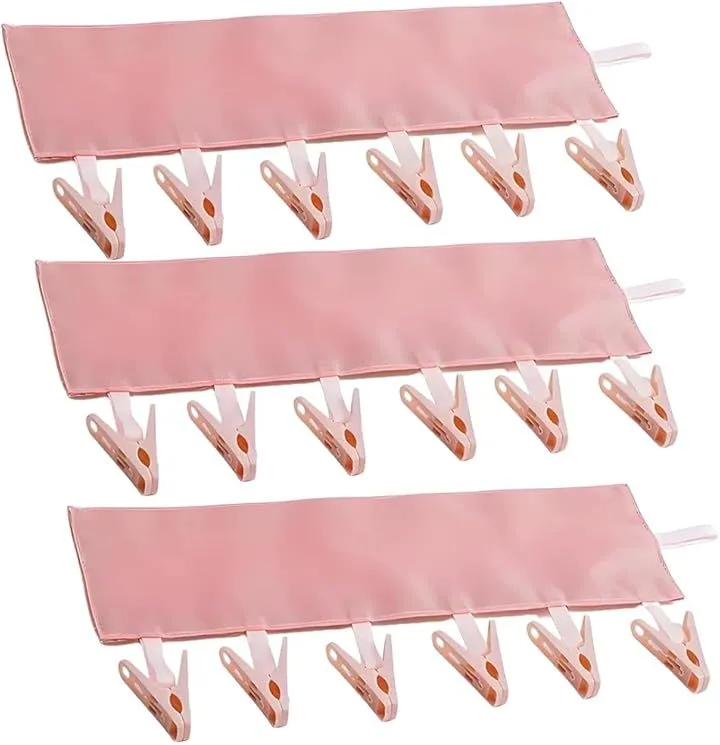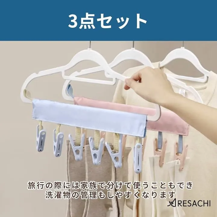 ARESACHI ハンガーピンチ 携帯ハンガー 旅行 トラベル 持ち運び 3点セット (ピンク, 34x10)
