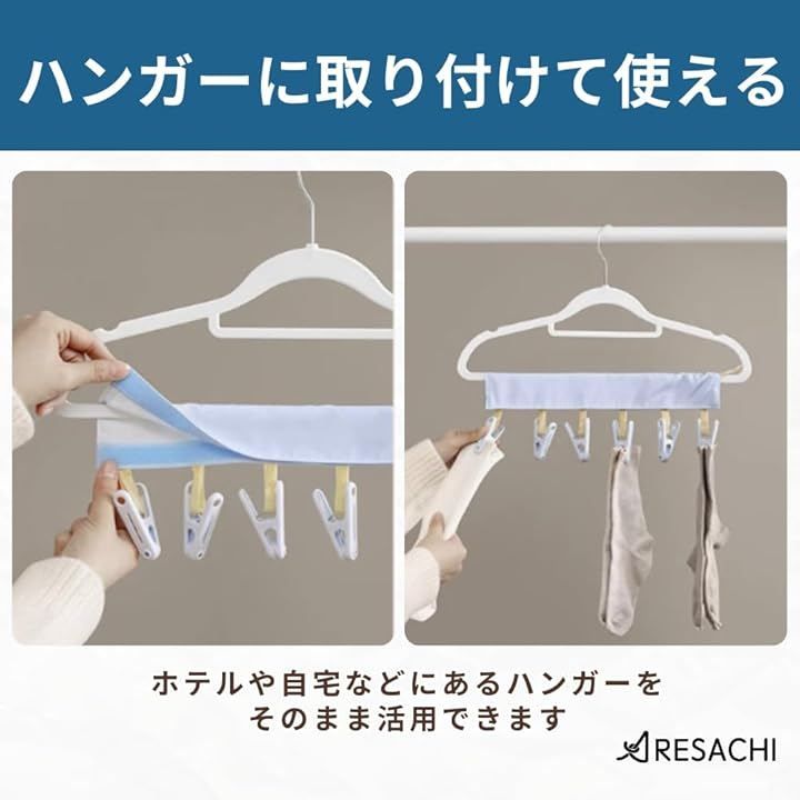 「靴下や下着などの小物干しに便利」靴下、下着、ハンカチ、マスクなどの小さな洗濯物をまとめて干しやすい洗濯ばさみ付きタイプです。