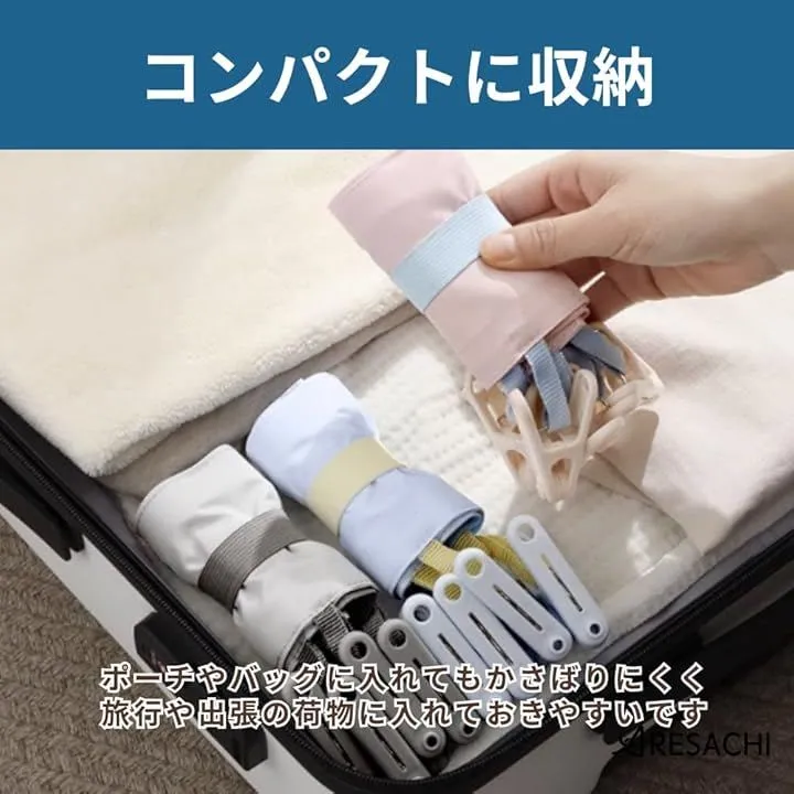 ホテルや自宅などにあるハンガーをそのまま活用できるため、特別な物干しを用意する必要がありません。