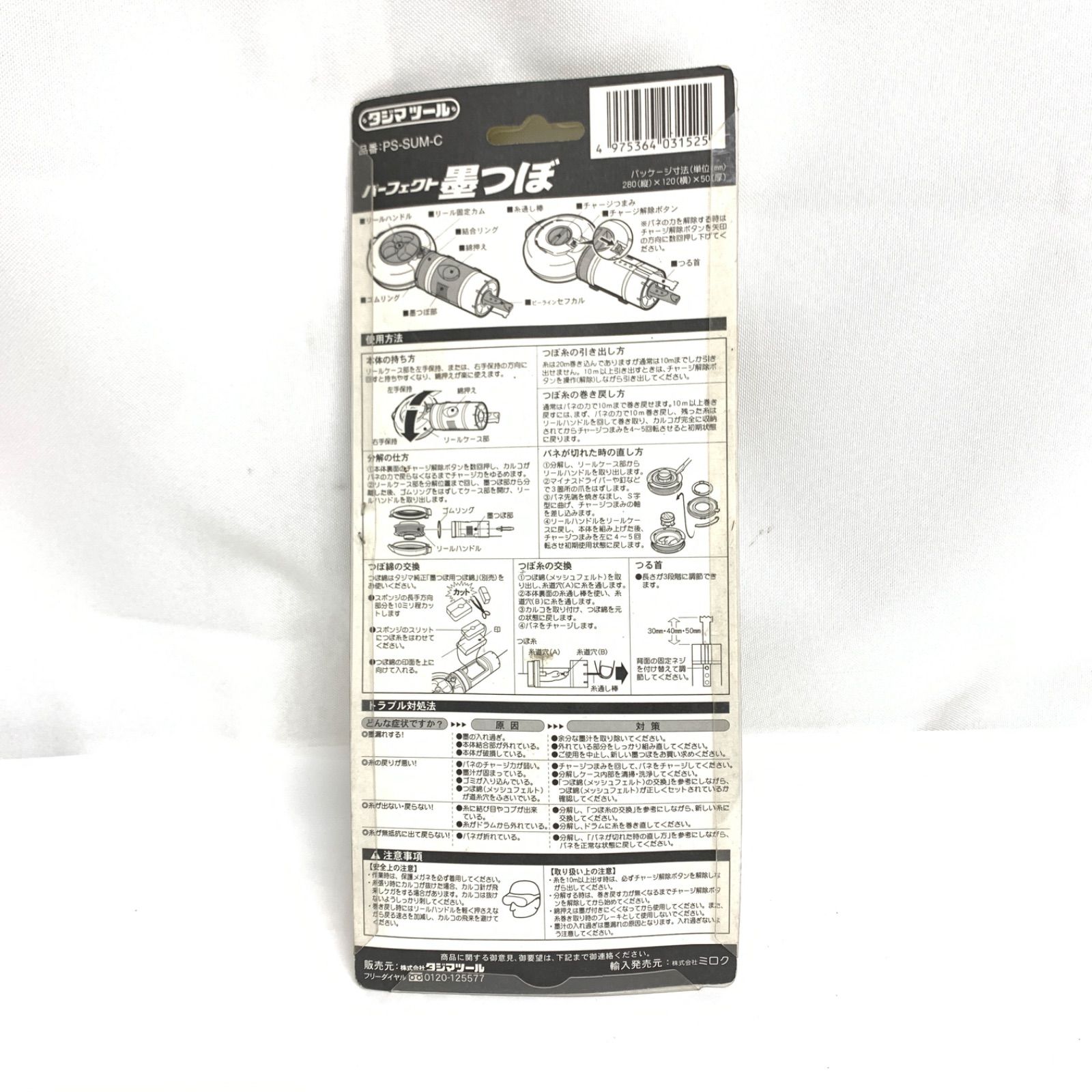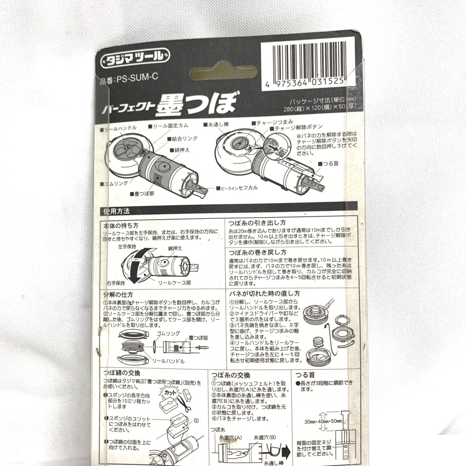 【未使用品】タジマツール 自動巻取式墨つぼ パーフェクト墨つぼ PS-SUM-C 自動巻取10m 廃盤限定色 ご覧いただき有難うございます。 商品は写真で判断頂き落札お願いします。 神経質な方は落札をお控えください。 <商品について> ・未使用品ですが、保管による多少の汚れが外装等に見られます。 ・光の具合で色味が本品とは違うお色味に映る場合がございますのでご了承下さいませ。 ・商品の使用方法についての説明は当店ではお受けできかねますのでご了承下さいませ。 <お値下げについて> ・値下げは定期的に行っておりますので、大幅な値下げは出来かねます。ご了承下さいませ。 <配送について> ・こちらの発送方法は、箱をプチプチで巻いた簡易包装、もしくは代替の箱や袋に直接発送伝票を貼り付けての発送になります。 ・梱包に関して特にご希望がありましたら、事前に取引メッセージにてご連絡頂きましたら可能な限りで対応させて頂きます。 ・悪天候等で、配送業者による発送が遅延する場合がございます。 ・置き配ご希望の場合、万が一トラブルが発生しても弊社では一切の責任を負えませんので、お客様自身のご判断でご利用をお願いいたします。 ・同じ商品を複数ご購入されたお客様は、ご連絡が無ければご購入された商品全て同梱で発送させて頂きます。 <お知らせ 領収書/ご質問対応について> ・領収書をご入用の場合は、ご購入後は質問欄ではなく取引メッセージにてご希望の宛名と共に事前にご連絡下さい。 ・商品発送後の領収書のみの発送は、着払い60サイズでの発送対応となりますのでご了承下さいませ。 ・なお、PDF等ファイル形式での領収書発行は対応しておりませんのでご了承下さいませ。 ・質問やお問合せは、平日10時~15時までとなっております。ご了承下さいませ。 ・年末年始、お盆、GW等の大型連休中のご連絡や質問回答、発送は出来かねますのでご了承下さいませ。