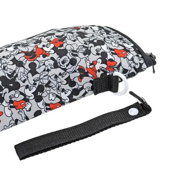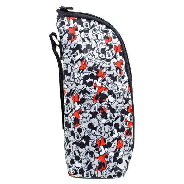 モノクロに赤が映える!カッコいいミッキー&ミニー柄の哺乳瓶ポーチです。