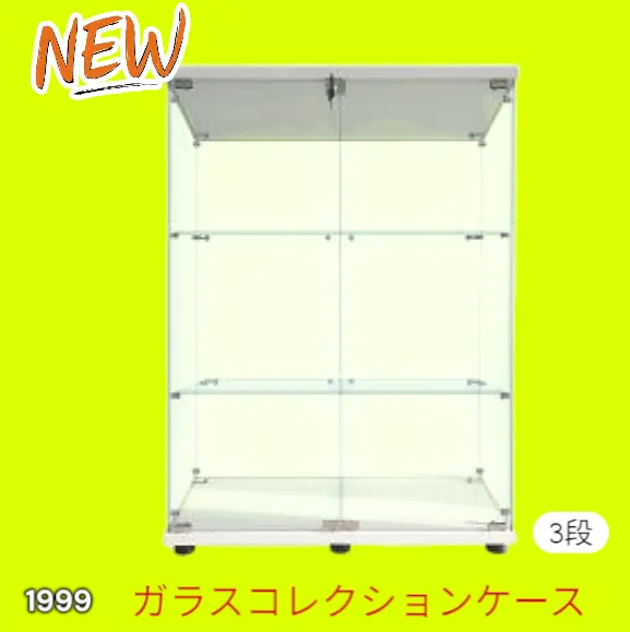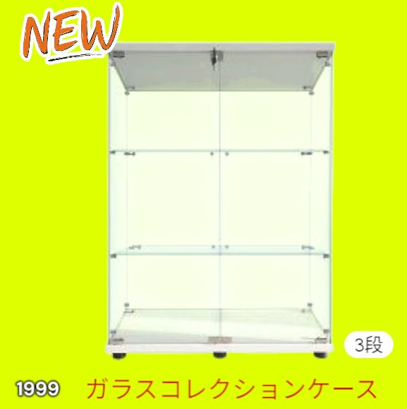 #1999 両扉 強化 ガラス ケース 3段 ホワイト 鍵付き 豆脚付き 転倒防止器具付き フィギュア プラモデル プラモ 鑑賞 展示 自宅 店舗 ディスプレイ 付属品 ※一部地域離島別途配送料有