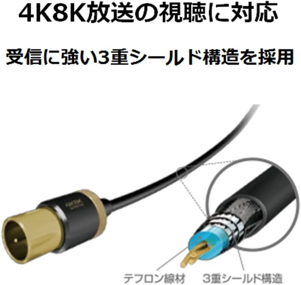 地上波放送、4K8K放送の視聴、録画に最適なTV接続用アンテナケーブルです。