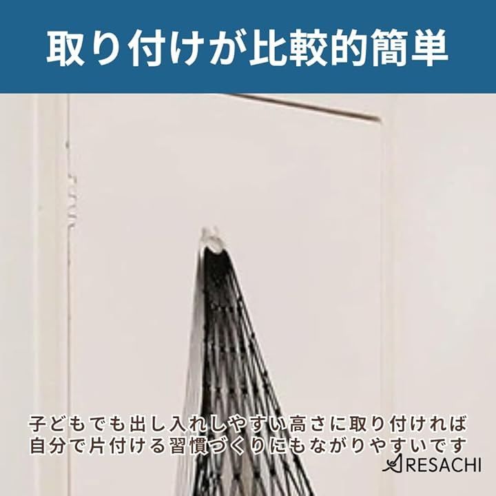 子どもでも出し入れしやすい高さに取り付ければ、自分で片付ける習慣づくりにもつながりやすくなります。