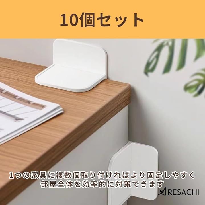 ARESACHI 耐震ダンパー 家具転倒防止 地震対策 強力粘着 穴開け不要 家具固定 ホワイト 10個セット