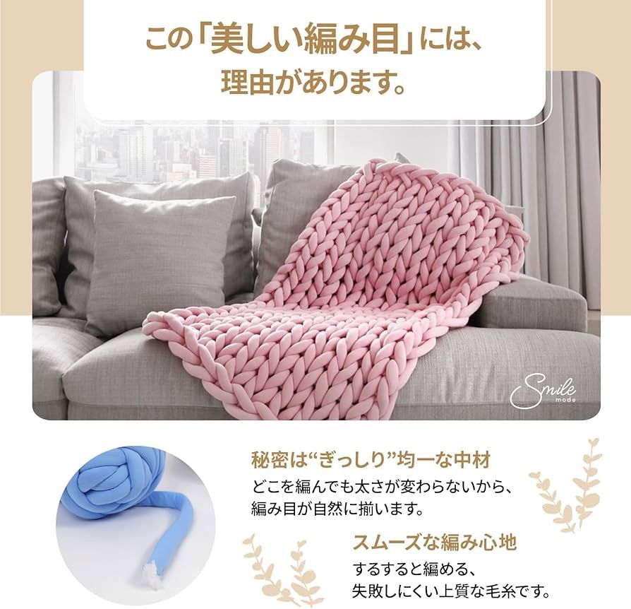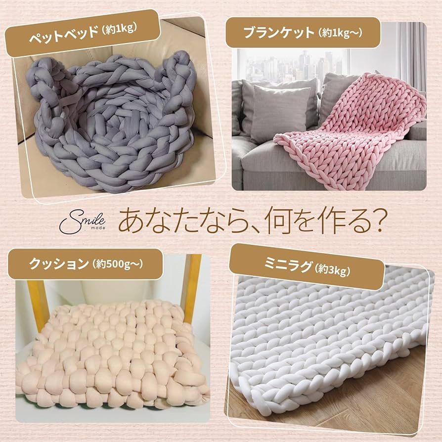 【洗えて、くり返し使える】 素材は扱いやすいポリエステル100%。(中材は弾性繊維)完成したバッグやブランケットが汚れてしまっても、ご自宅で優しく手洗いできるので、いつでも清潔に保てます。ほどいて別の作品に編み直すこともできるので、サステナブルなアイテム作りにも最適です。 ※一度開封しておりますが未使用美品! 念入りに検品しておりますが、見逃しがある場合がございます。受取評価後のクレームに関しては対応できかねますので、何かあれば評価前にご連絡ください。