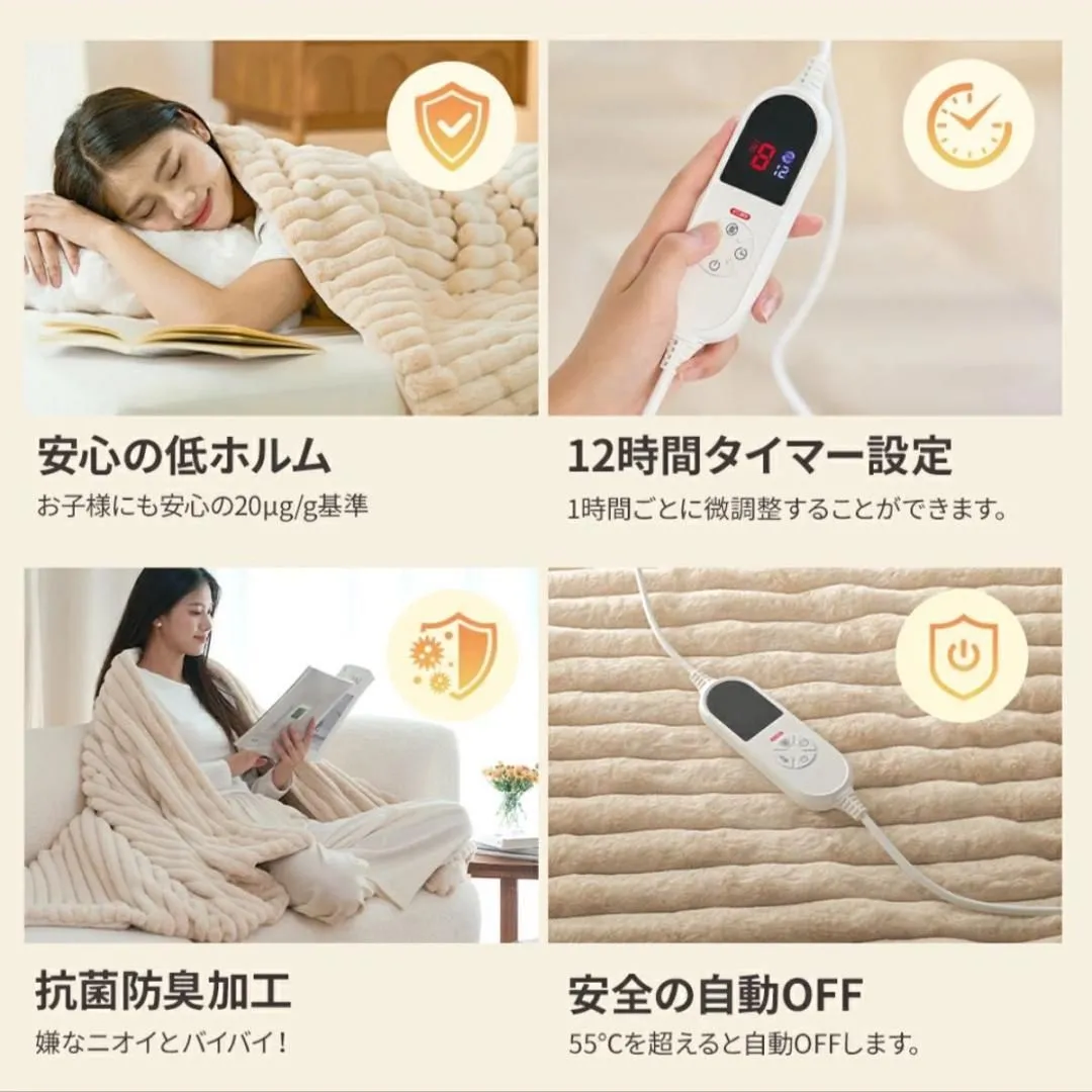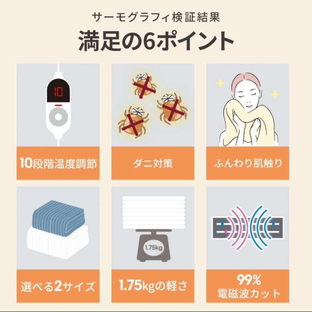 【ダニ退治モード】ふわもこ毛布 とろける肌触り 快適な睡眠環境 190×130cm 10段階温度調節 99%電磁波カット 省エネ