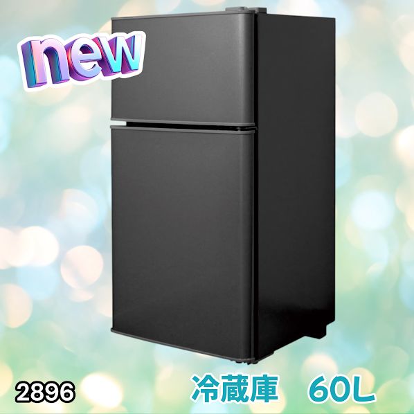 #2896 冷蔵庫 2ドア 右開き ブラック 60L 冷蔵室 38L 冷凍室 22L 1人暮らし コンパクト 省エネ 静音 設計 温度調整 ミニ 小型 家庭用 上段冷凍庫 業務用 ※一部地域離島別途配送料有