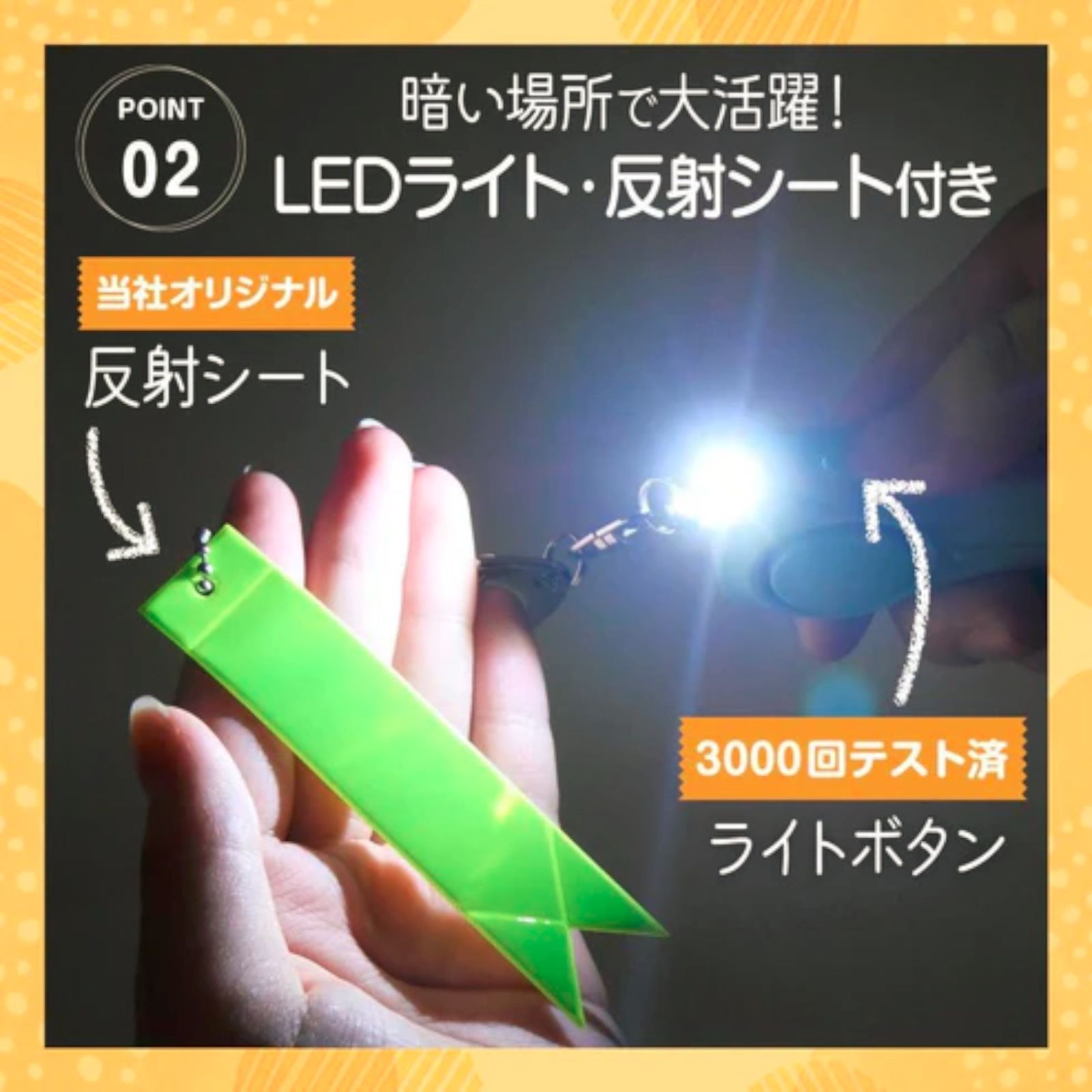 【LEDライト・反射シート付】 夜間でも居場所を知らせやすい!
