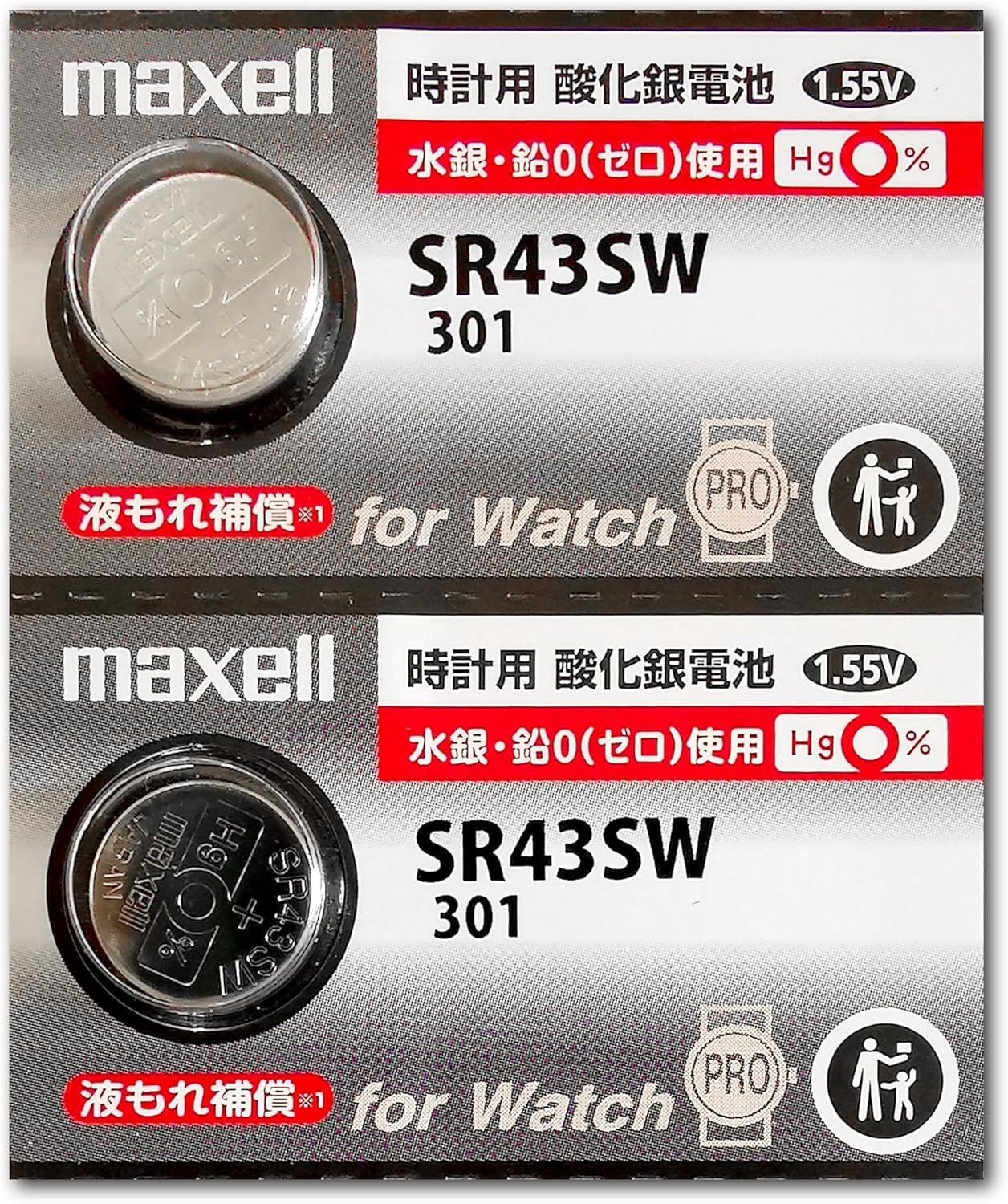 新品 Maxell マクセル 301 SR43SW ×2個 【日本製】 でんち ボタン 時計電池 時計用電池 時計用 SR43SW