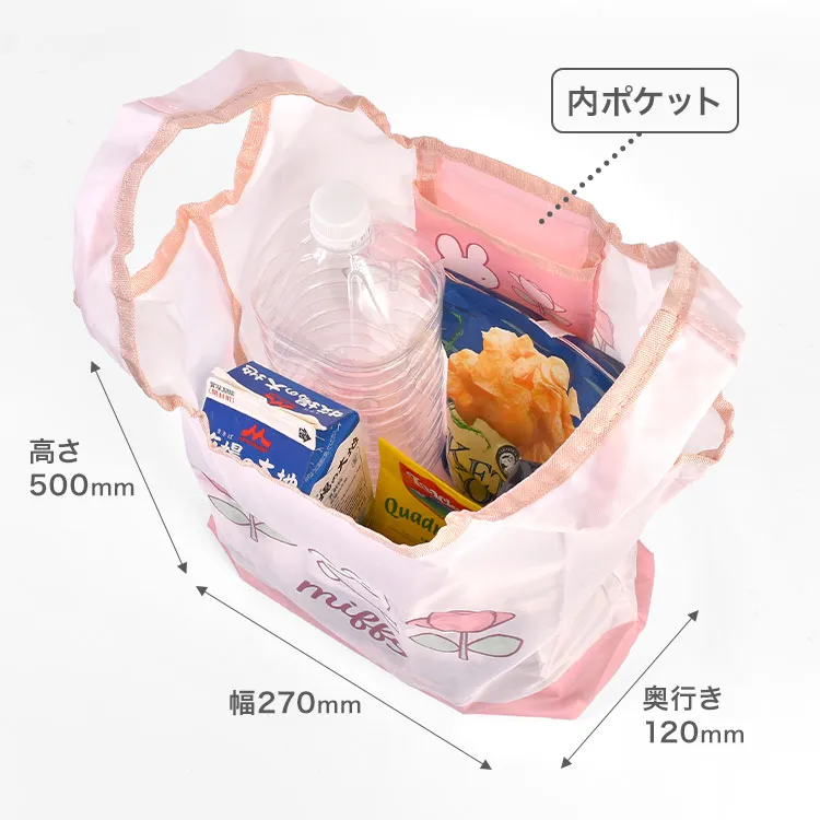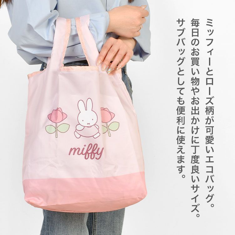 ミッフィー エコバッグ miffy 折りたたみ コンパクト 大容量 かわいい キャラクター 大きめ トートバッグ マチ広 マチ付き 軽量 大きい 買い物バッグ サブバッグ 鞄 おしゃれ 可愛い ピンク うさぎ ローズ 花