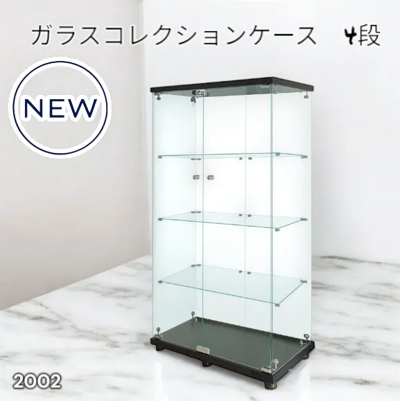 #2002 両扉 強化 ガラス ケース 4段 ブラック 鍵付き 豆脚付き 転倒防止器具付き フィギュア プラモデル プラモ 鑑賞 展示 自宅 店舗 ディスプレイ 付属品 ※一部地域離島別途配送料有