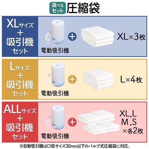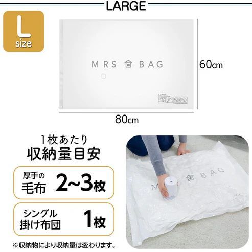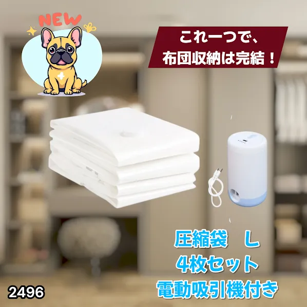 #2496 圧縮袋 Lサイズ 4枚セット 衣類 ふとん 電動ポンプ 吸引機 バルブ式 布団圧縮袋 ポンプ 電動 掃除機不要 特大 ※一部地域離島別途配送料有