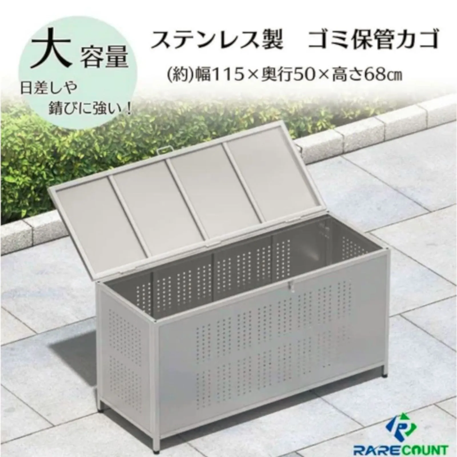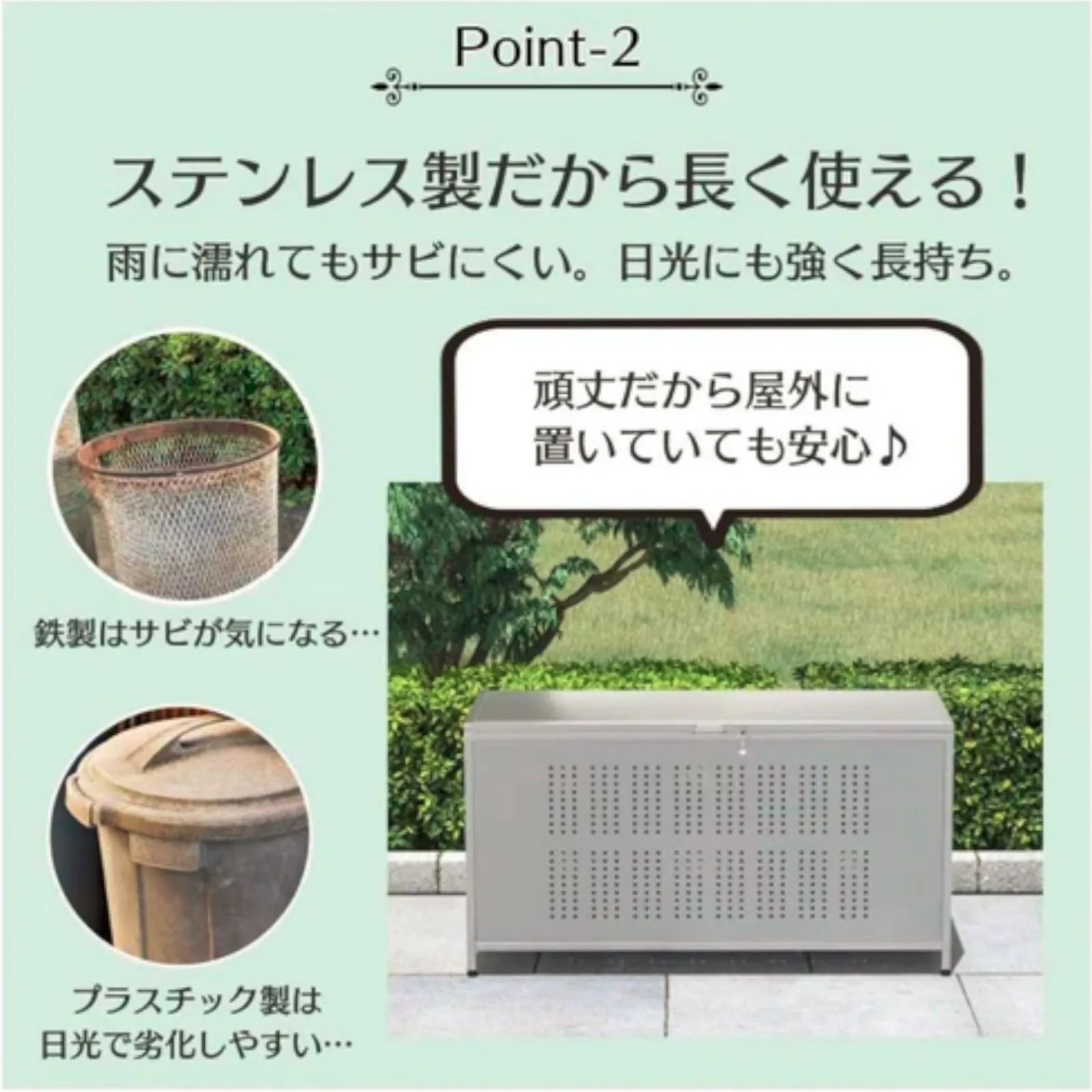 ご家庭用のゴミの一時的な保管に便利です。素材はステンレス製なのでサビに強く、鉄製品より長持ちします。シンプルな外観で周りの景観を損ないません。