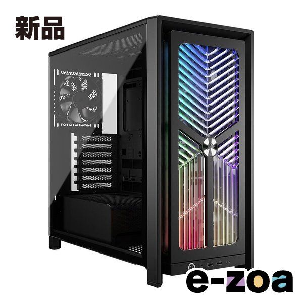 ●高エアフローに最適化されたRGBフロントパネル 高エアフローに最適化されたデザインのフロントパネルを搭載。 マザーボードのソフトウェアからコントロールできるRGBライティングを内蔵しており、 鮮やかなドレスアップを楽しめます。 ※マザーボード上に、5V RGBピンヘッダを搭載している必要があります。 詳細は各マザーボードの仕様をご確認ください。