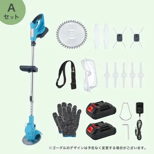 【セット内容(Aセット/標準セット)】 本体×1 バッテリー(2000mAh)×2 充電器×1 ナイロンコードカッター×2 ナイロン製ブレード×5 スチールブレード×2 チップソー×1 フロントガード×1 飛散防止カバー×1 補助ハンドル×1 ストラップ×1 ゴーグル×1 手袋×1 ◇注意事項◇ ・多少の汚れや擦れなどがある場合がございます。元箱などにも若干のスレや汚れ等がある場合がございますがご容赦下さい。 ・入荷時期により色味や濃淡が異なる場合がございます。 ・画像の商品は光の照射や角度、撮影状況、お使いのモニター環境により、実物と色味が異なる場合がございます。 ◇当ショップ運営について◇ ・こちらの商品はお客様の都合(サイズ・型番・カラー違い等)での返品や交換は受け付けておりませんのでご理解お願い致します。 ・同時に他のショップやフリマ等にも出品しておりますので、同じタイミングでご購入される場合もございます。その場合、先にご購入された方を優先しての販売となります。 ・当ショップ運営時間や休日の都合で大変申し訳ございませんが、2~10日間ほどお時間が経ってキャンセルになる場合もございますのでご了承下さい。 ・当社は土日祝日、GW、お盆、年末年始は休みになっております。休日にいただいたコメントの返信や商品の発送などは翌営業日の対応になります。 ・当ショップの運営方針や説明欄をお読み頂き、ご理解ご納得いただいた上でご購入お願い致します。 最後までご覧いただきましてありがとうございました。