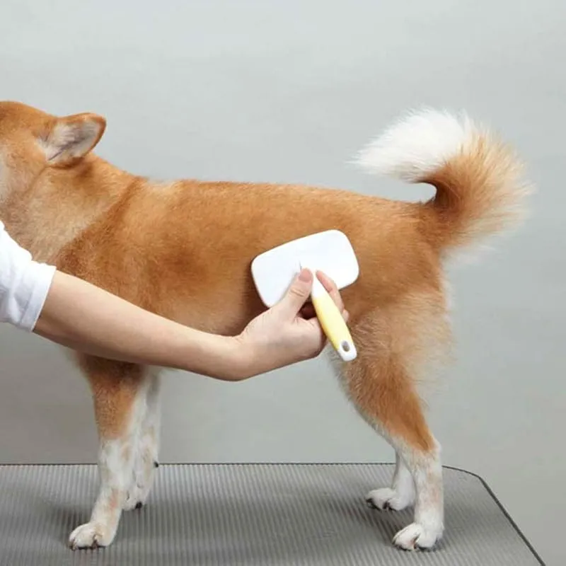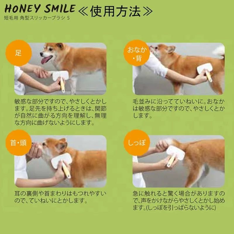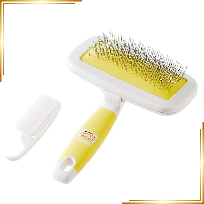 【商品概要】 本体サイズ (幅X奥行X高さ) :10×3.7×13.5cm 本体重量:0.056 原産国:中華人民共和国 短毛犬の抜け毛をしっかりキャッチ。きめ細かなお手入れのための、便利アイテム。 いつものブラッシングのあとに、抜け毛をしっかり除去してあげましょう。ムレを防いで健康的な被毛・皮膚を保ちます。 ブラッシングしながら抜け毛を取り除きます。長さ違いのピンが表面・根元の抜け毛をキャッチ。 肌にやさしい先丸ピン。 お掃除クシ付きで、使用後のブラシ掃除も簡単です。 金属部分はサビに強いステンレス製。プラスチック部分は抗菌加工をしています。