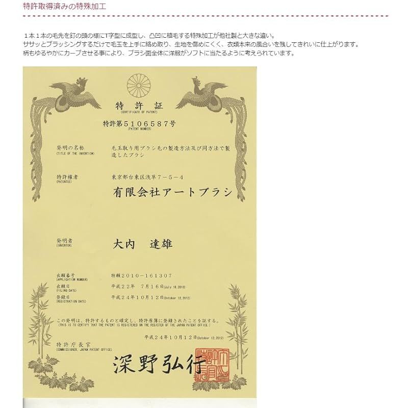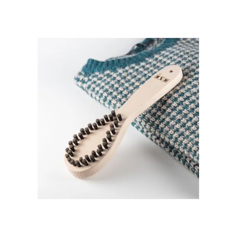 【商品説明】 毛玉取りブラシの新商品 かんたん毛玉取りブラシ「極」 ブラッシングするだけで毛玉をきれいにお手入れ。 衣類など毛玉を簡単にお手入れできる毛玉取りブラシです。 ウール・ニット・フリースなど毛玉の出来やすい衣類にどうぞ 大量の毛玉も新品同様の姿へ。 特許取得済みの特殊加工 1本1本の毛先を釘の頭の様にT字型に成型し、凸凹に植毛する特殊加工が他社製と大きな違い。 ササッとブラッシングするだけで毛玉を上手に絡め取り、生地を傷めにくく、衣類本来の風合いを残してきれいに仕上がります。 柄もゆるやかにカーブさせる事により、ブラシ面全体に洋服がソフトに当たるように考えられています。 ※ブラシの中にたまった毛くずは、ブラシクリーナーで掻き出すようにお掃除して下さい。