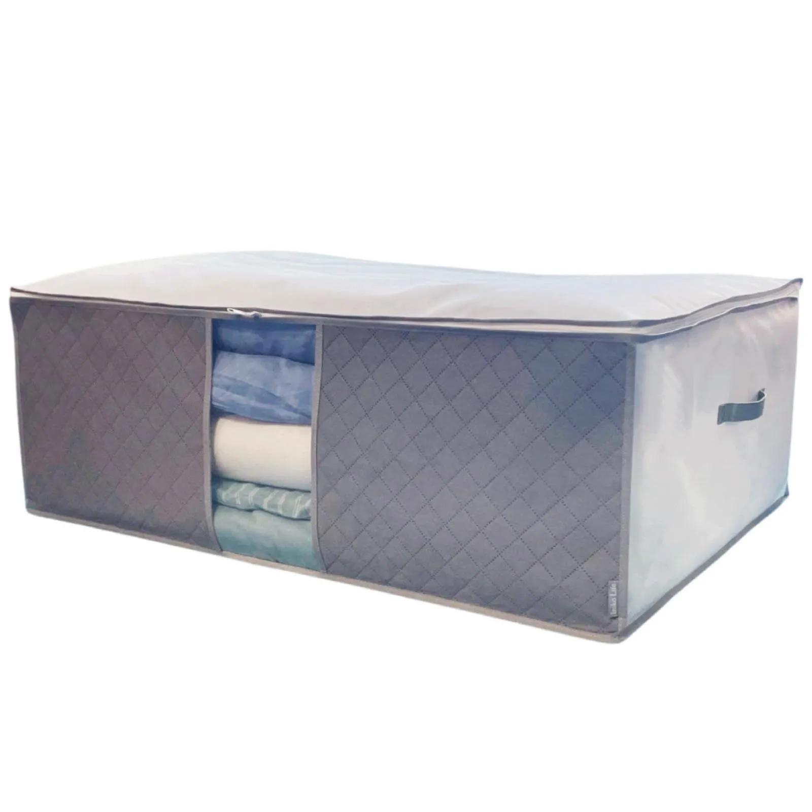 【通気性の良い布団収納ケース】通気性の良い厚手不織布製。前面に活性炭シートを加工し、大切な布団や寝具をにおい・ホコリ・汚れから守ります