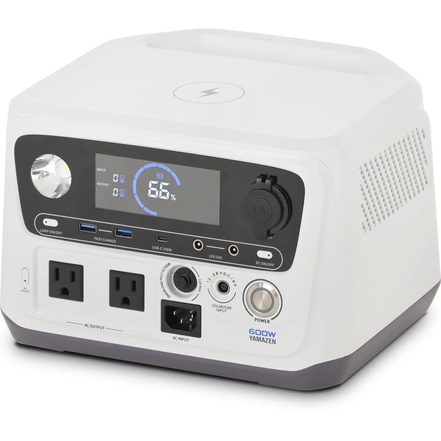 山善 ELEIN ポータブル電源 大容量 409.6Wh リン酸鉄リチウムイオン電池 (出力 AC/USB-A/USB-C/ワイヤレス/DC) 定格600W 3WAY充電 コンパクト キャンプ 車中泊 防災 YPB-RS600shun