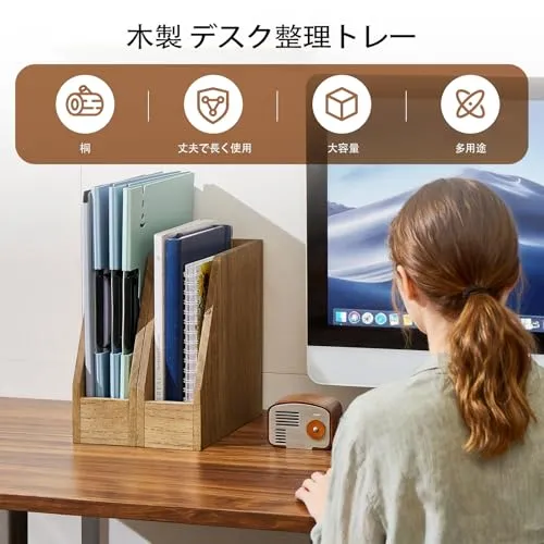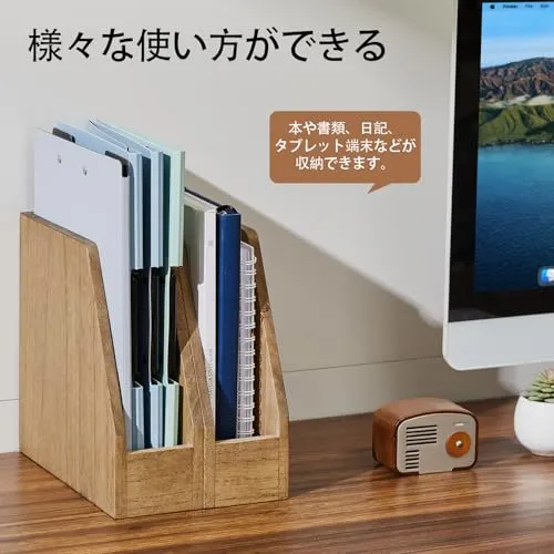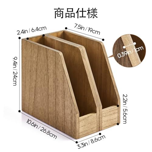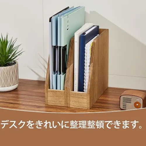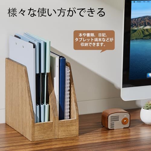 KIRIGEN ファイル収納ボックス ファイルボックス a4 卓上収納 立てる収納 ブックエンド ブラウン 幅8.6*奥行26.8*高24cm TQ-2TWJJ-DBRshun
