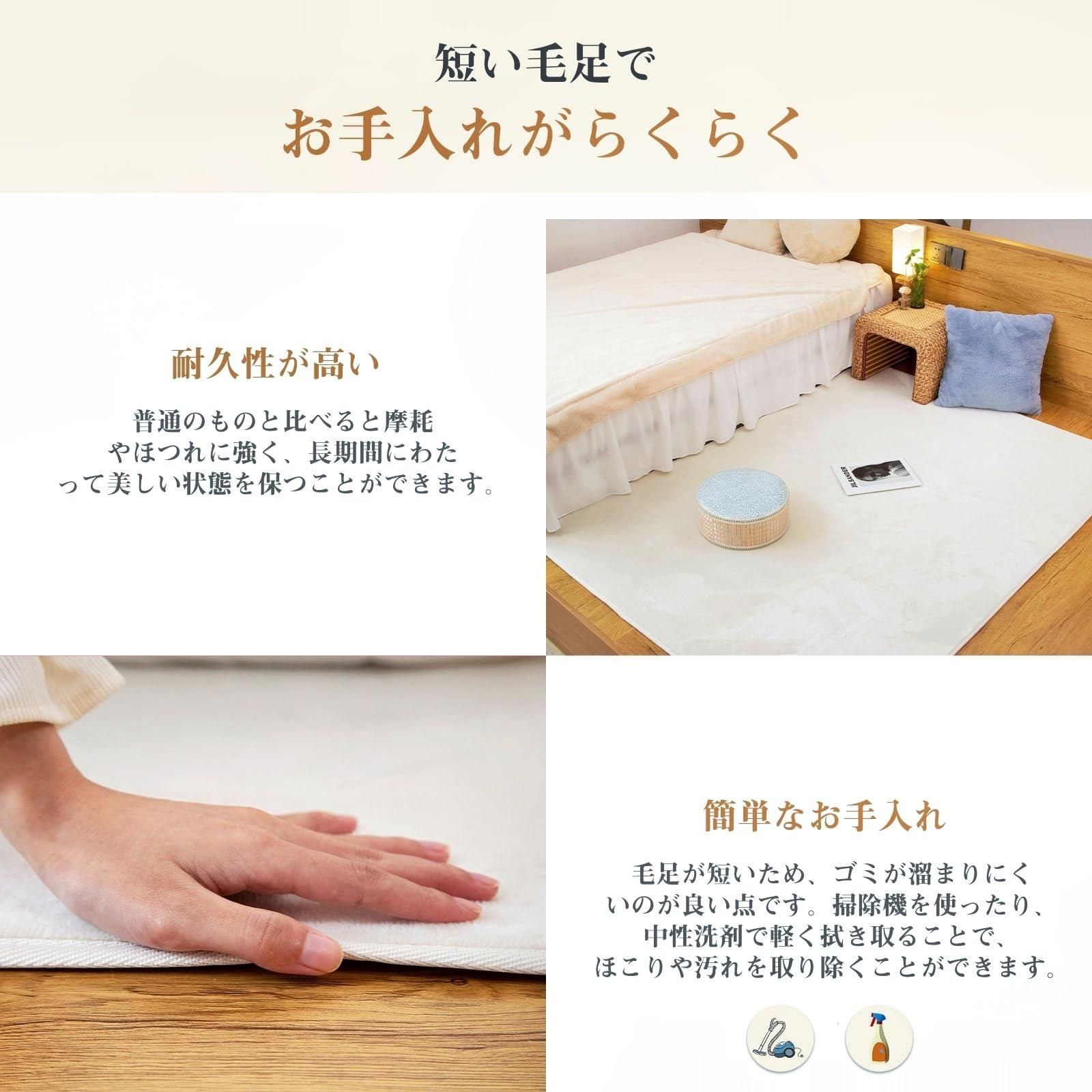 クリーム_185*185cm Qucover カーペット ラグ ラグマット ラグカーペット 約2畳 正方形 オールシーズン 防音マット 滑り止め付き 無地 (185cm×185cm,ホワイト)