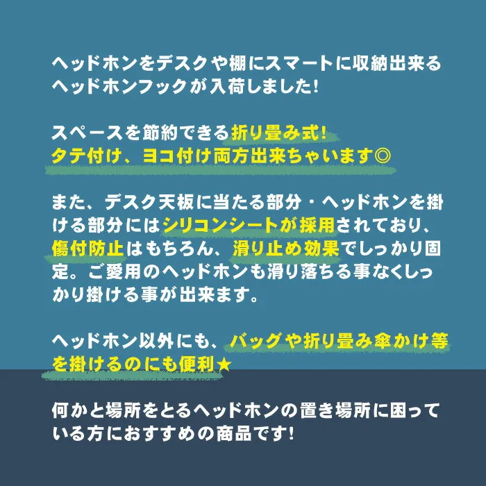 【関連キーワード】 #ヘッドホンフック #ヘッドホンスタンド #ヘッドホンハンガー #ヘッドフォン #フック #デスク収納 #机 #クランプ式 #省スペース #収納 #整理整頓 #ゲーム #在宅ワーク #テレワーク #配信 #オフィス #シルバー