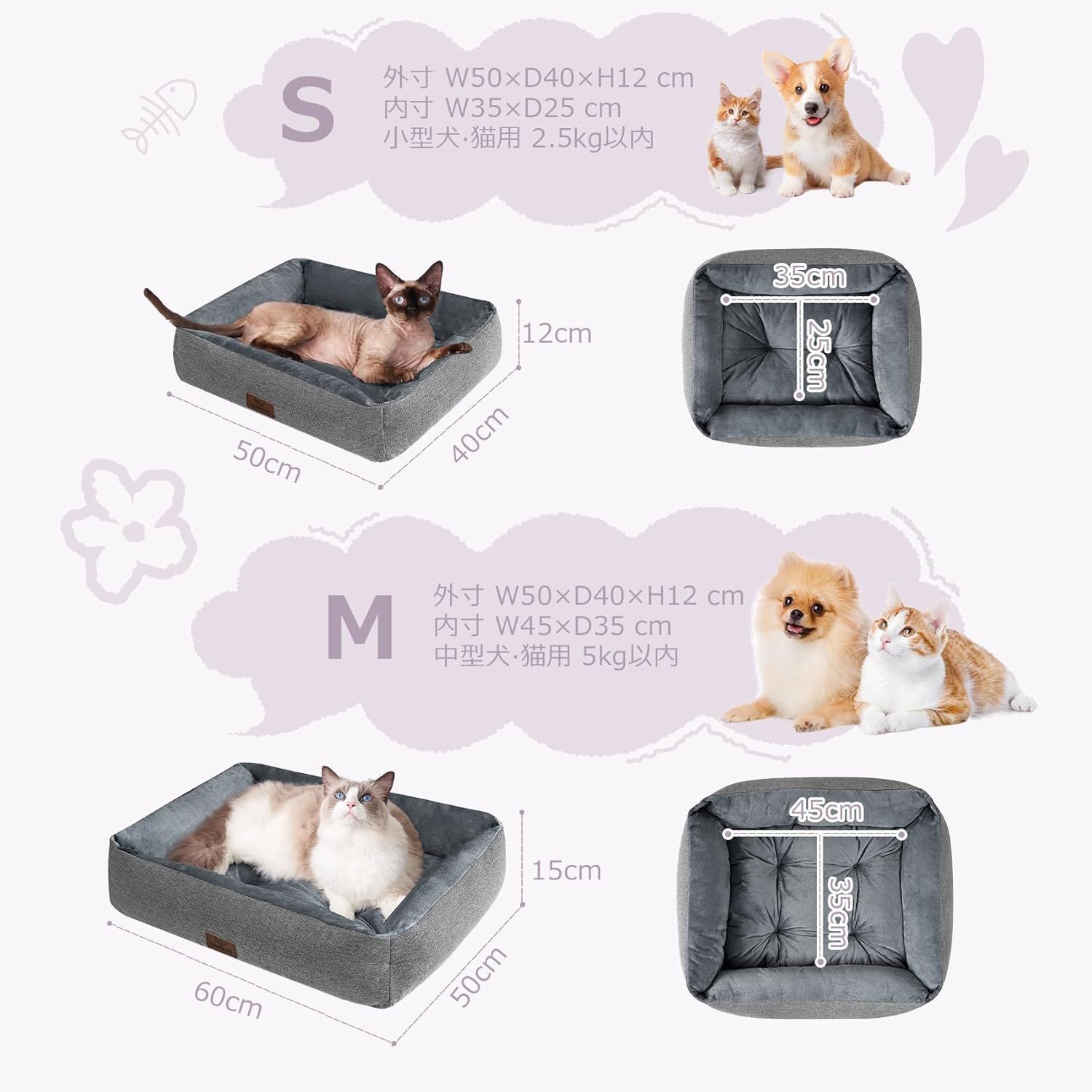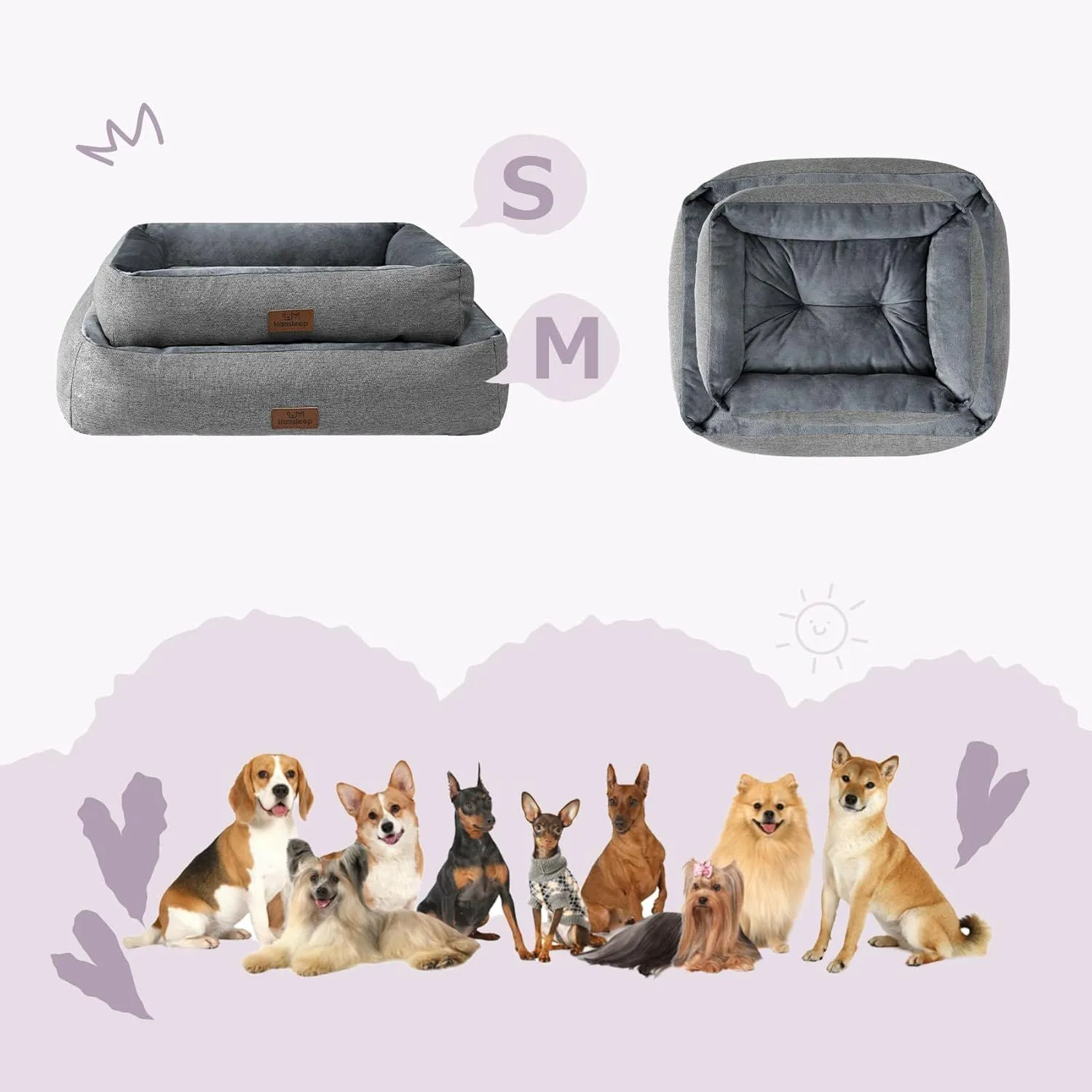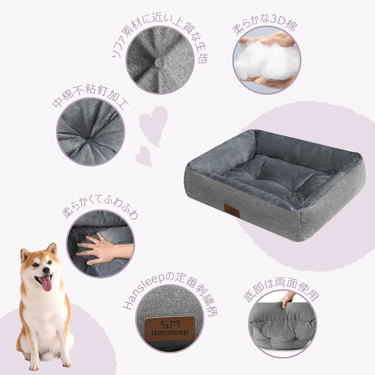 【汎用性】Hansleepは「小型犬用」と「中型犬用」のサイズを用意しています。 また、猫への使用にも適しています。 クレートでの使用や床に直接置くなど、さまざまなシーンに対応できるため、最適なサイズを選んでください。