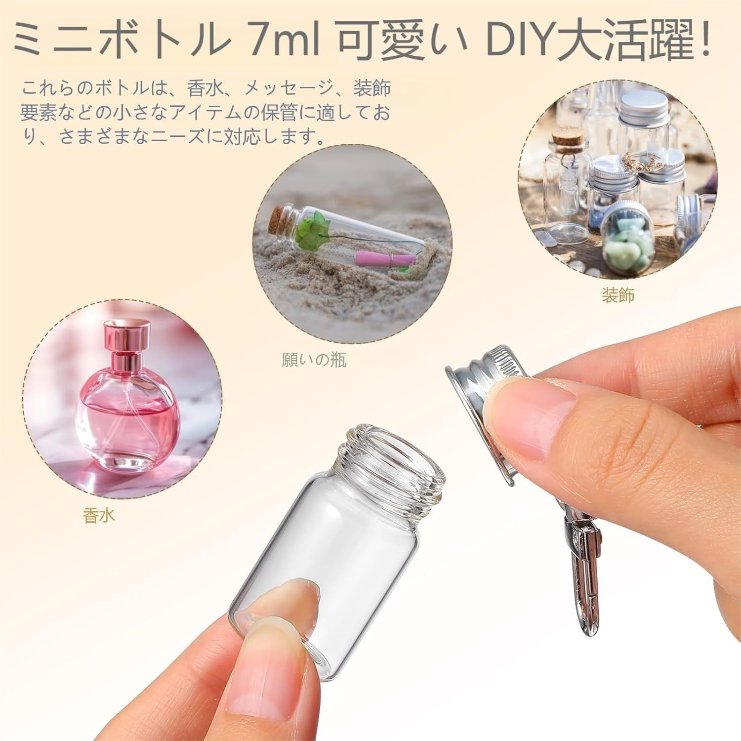透明ガラス仕様で中身が見えやすく、香水やビーズ、小さなパーツの収納にぴったり。7mlのコンパクトサイズながら、アクセサリーや小物の持ち運びにも便利です。