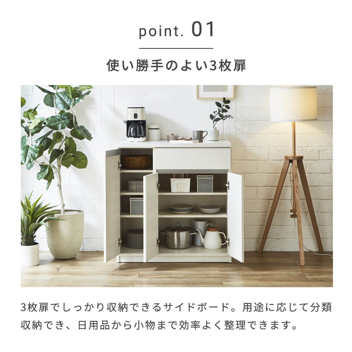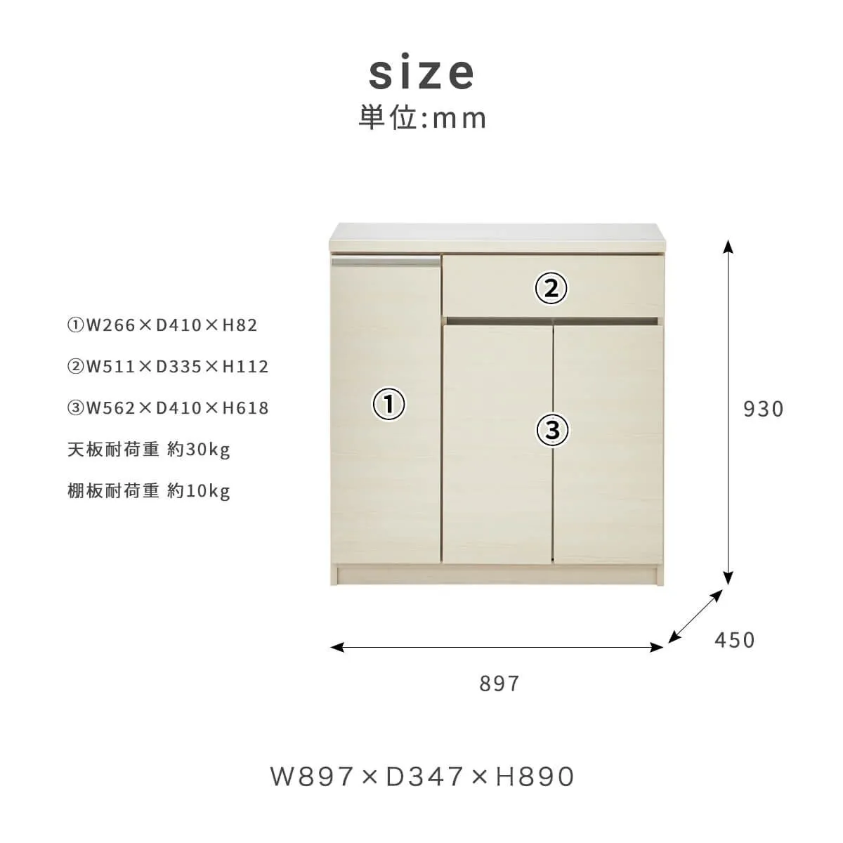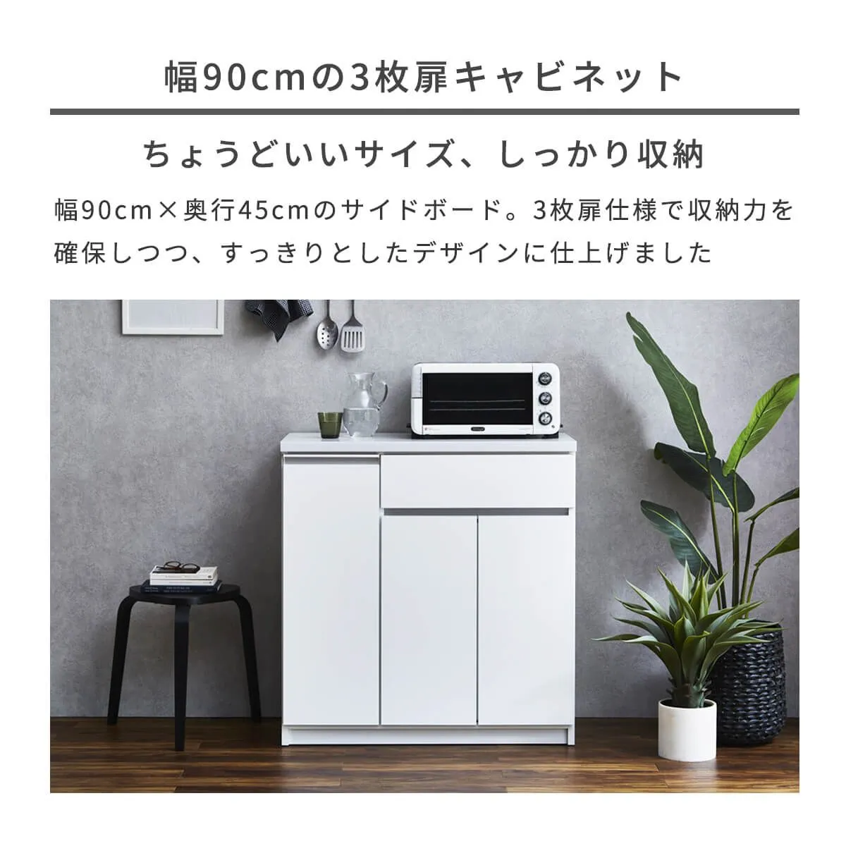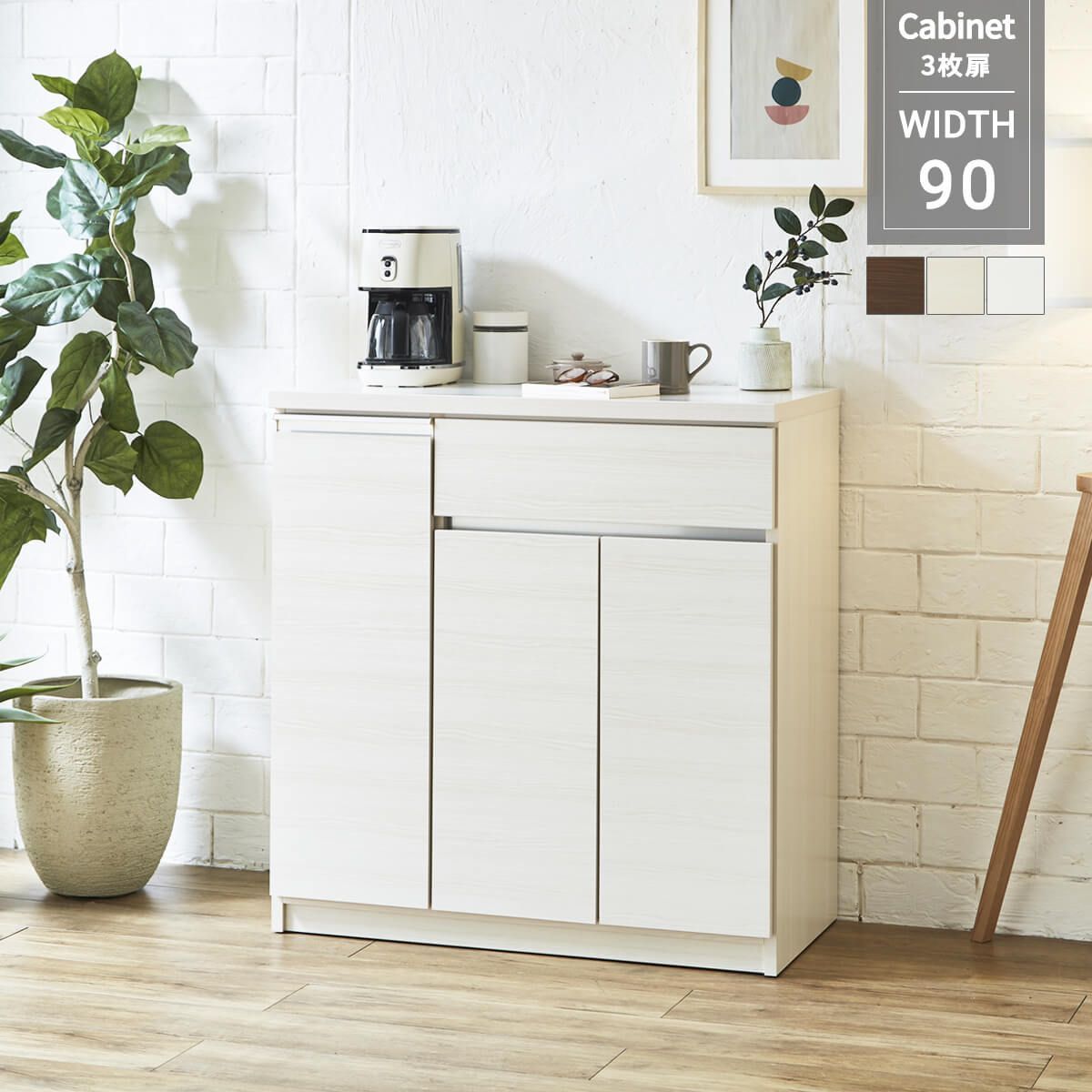 キッチンカウンター キッチン収納 幅90cm 日本製 完成品 シンプル モダン おしゃれ 引出 3枚扉 選べる3色 幅89cm 「才:15」