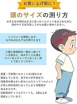 【注意事項・お買い上げになる前に】お子様の頭にあったサイズを選んでもらうために、商品画像を参考にし、購入前にお子様の頭囲を測ってください。