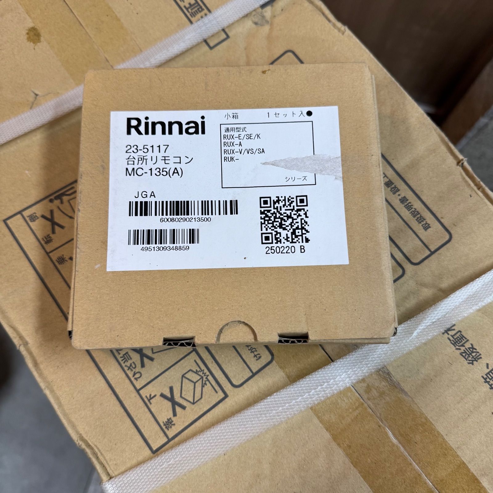 【新品】Rinnai リンナイ RUX-A1615W(A)-E 都市ガス用 リモコン付き! 新品未使用品!
