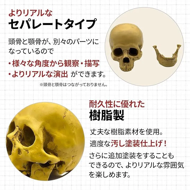 また、美術のデッサンモデルや彫刻の参考素材としても最適で、取り外し可能な顎の構造により、内部の詳細な確認が容易です。