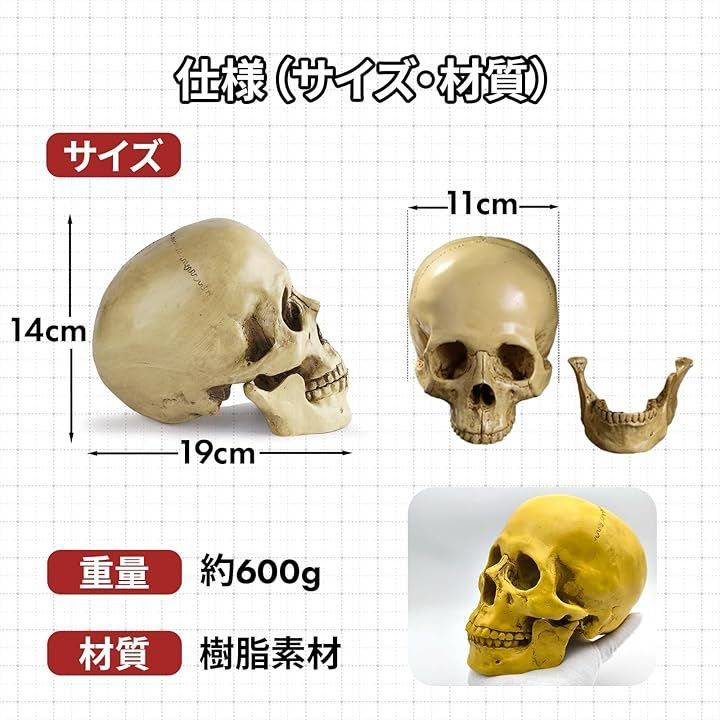 「インテリアやイベントにも最適」この頭蓋骨模型は、お部屋のインテリアとしても人気です。