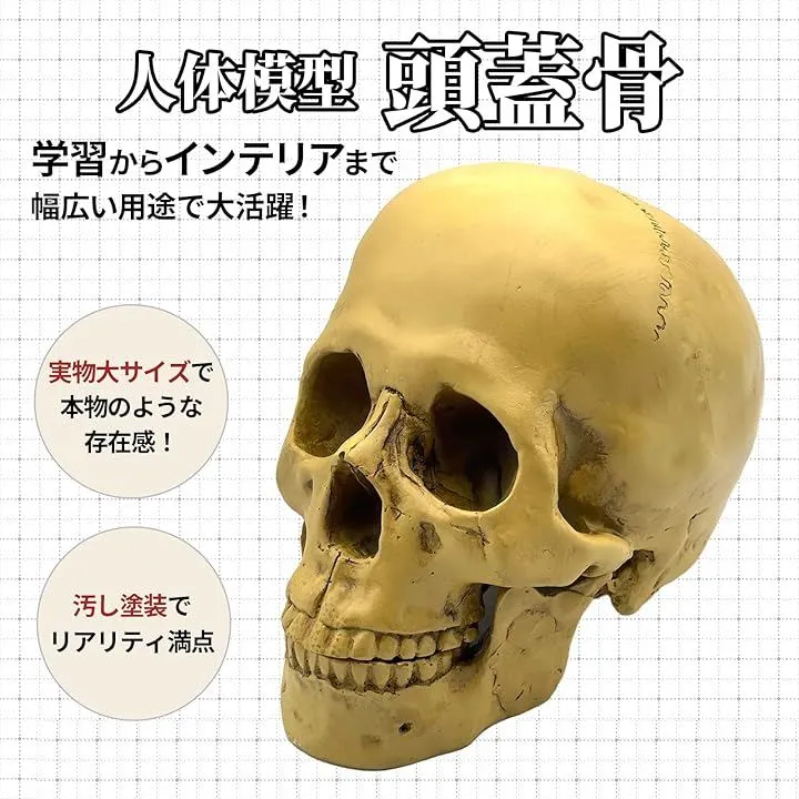 「リアルな造形で学習効果抜群」この等身大の頭蓋骨模型は、解剖学や生理学の学習に最適です。