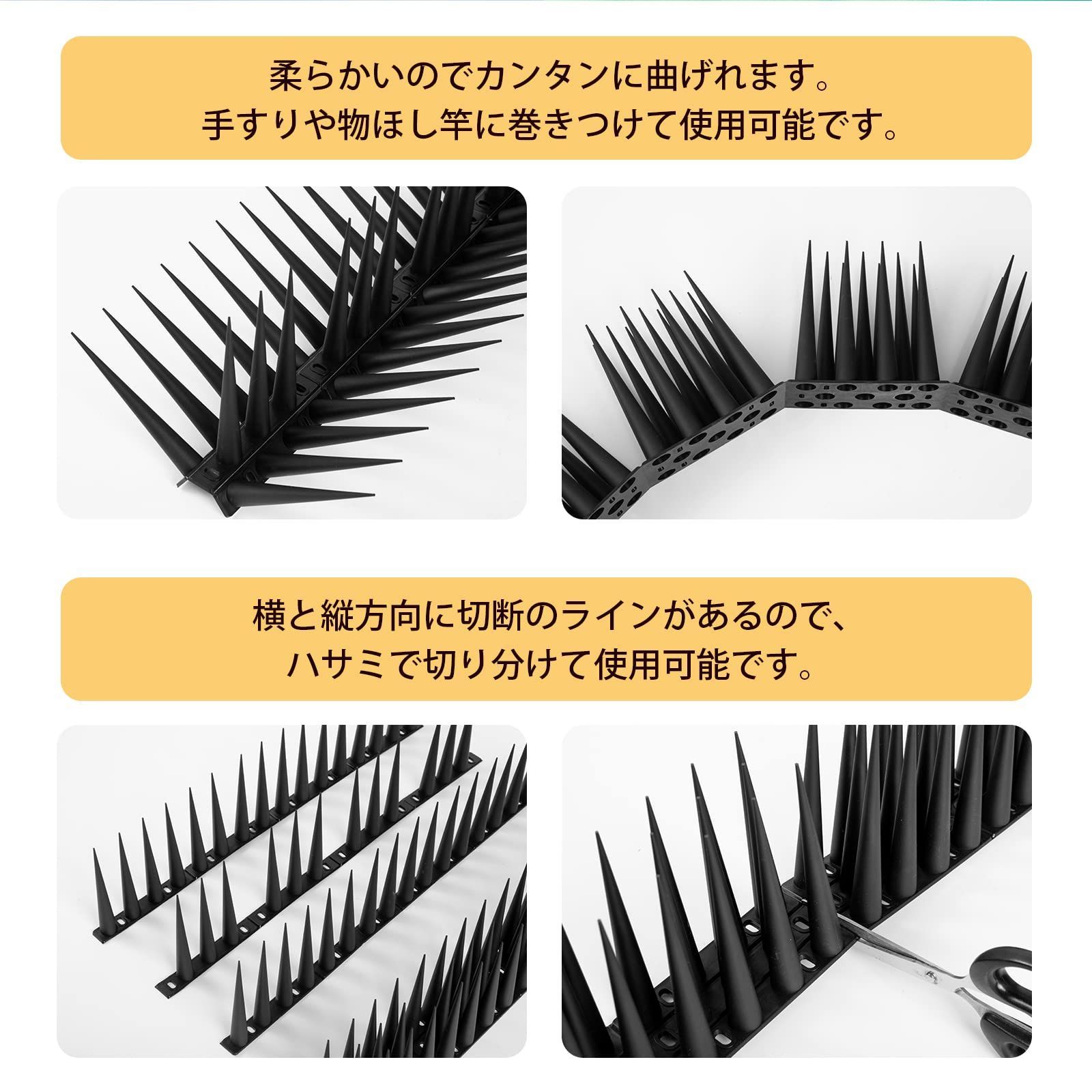 OFFO 鳥避け 鳩よけ とげ長め仕様 高さ10cm 自由カット 針が密集するとげ高め仕様 樹脂製カラスよけ 景観を損なわずフン害防止・ベランダ・屋上・手すり・庭栅用 20.5cm*6個入り(123cm) ブラック