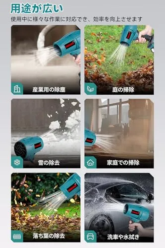 【洗車など様々な用途】このブロワー エアダスターは、洗車の拭き上げ、車内のゴミやホコリ飛ばし、除雪、キーボードの掃除、庭の掃除、マットのゴミの除去、扇風機代わり、ペットの入浴後の乾燥、炭火起こしなどさまざまなお掃除の場面で幅広く活躍できます。他のタイプのブロ