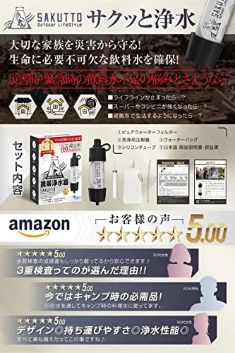 SAKUTTO 携帯浄水器 防災グッズ 浄水器 災害 防災 濾過器 アウトドア 災害グッズ 【日本正規品】shun